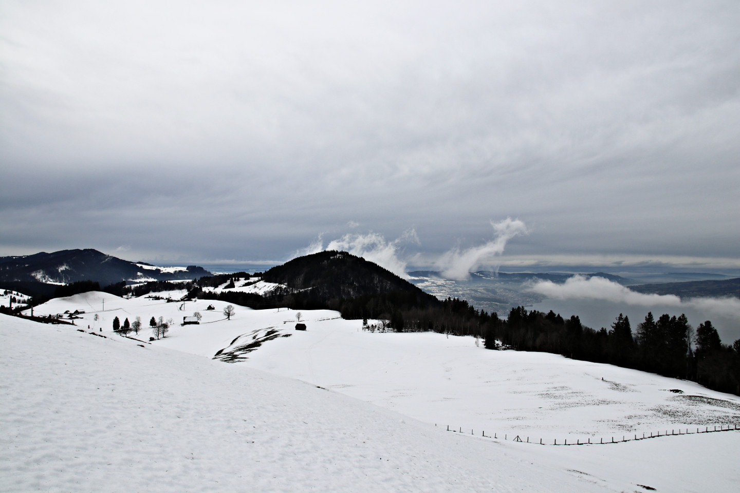 Ich hatte am Montag eine Wanderung nördlich des Sihlsees gemacht. Es hat sich trotz Schneematsch, Wind und taktischer Umgehung von Waldgebieten gelohnt. Die Föhnstimmung war recht eindrücklich, wenn auch die klassische Bewölkung wenig ausgeprägt war.