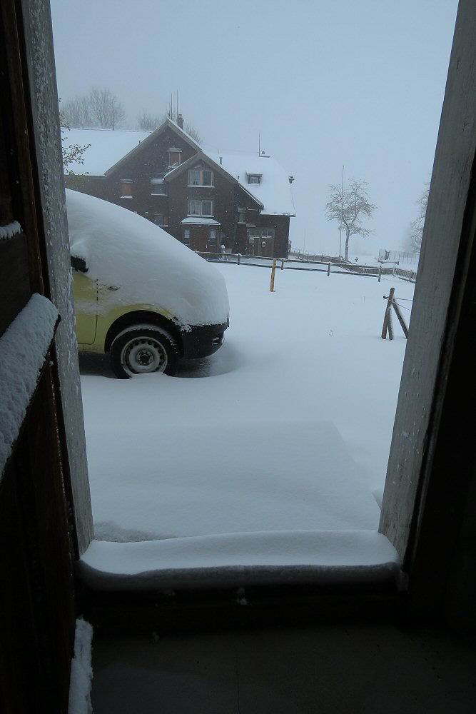 Während es in Amriswil (440m) meist grün blieb setzte der Schnee nur wenig weiter oben in Schocherswil (480 m) schon an.