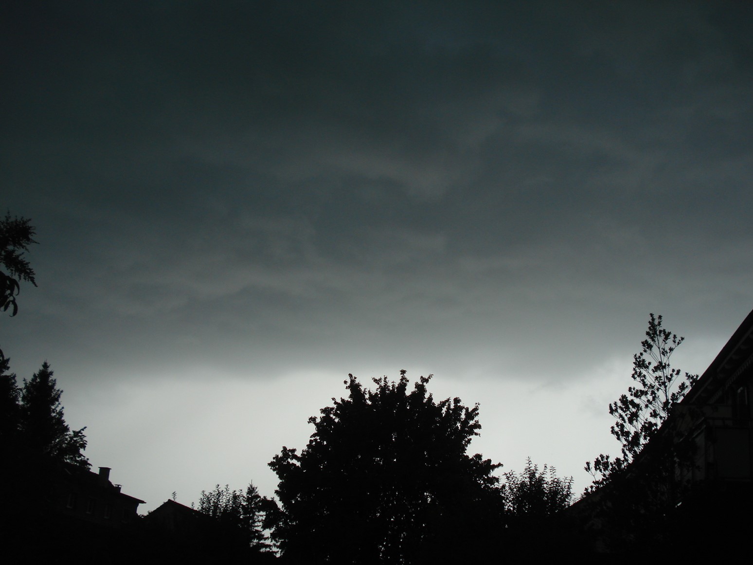 Der Aufzug sah recht bedrohlich aus und hatte definitiv auch eine Türkise Tönung. Hatt dann aber doch nur für einen kurzen Platzregen gereicht, Blitze sah ich auch keine.