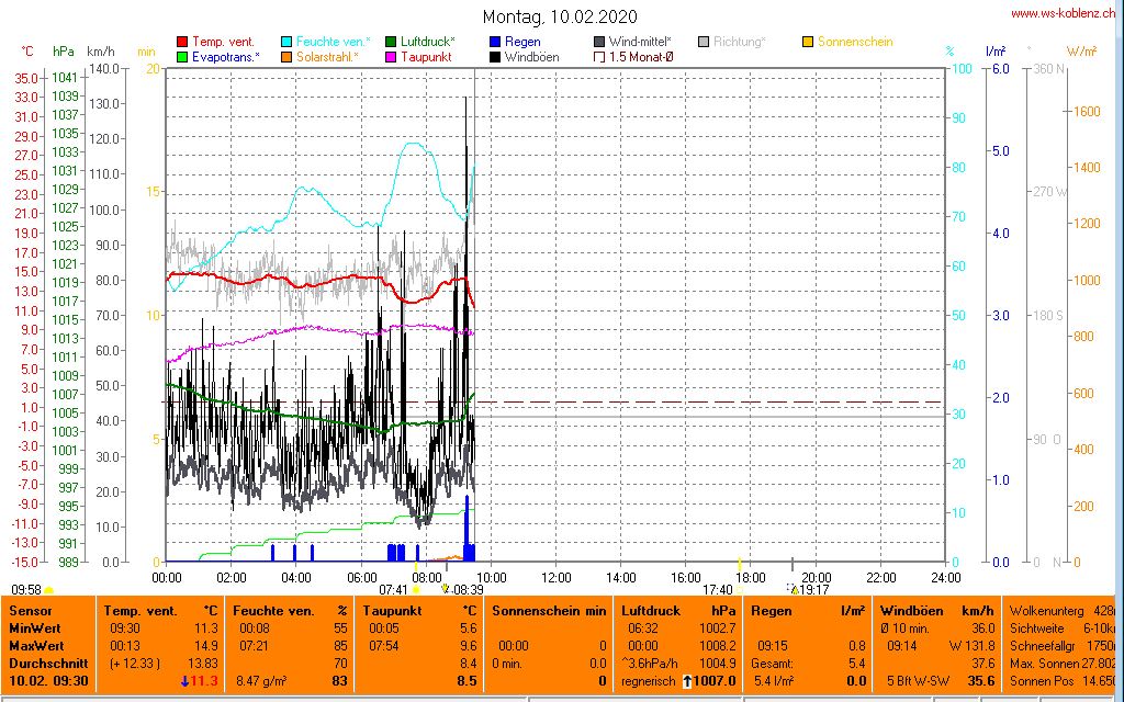 Messdaten der Wetterstation Koblenz (Hanspeter Grossen):