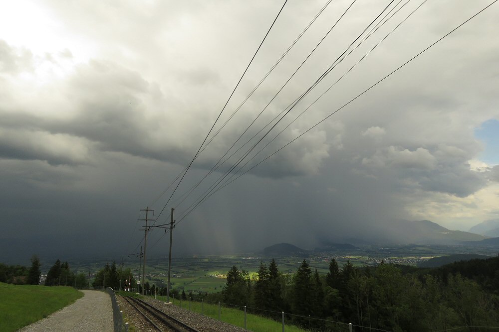 Da gibt es nix abzuwarten, der Fall ist klar. Mag mich nicht erinnern, in meinem inzwischen nicht mehr ganz so kurzen Meteorologenleben einen effizienteren Kaltluftpool erlebt zu haben. Die GFS-Ensembles des aktuellen Laufs für nächste Woche sind gegenüber dem gestrigen 00z-Lauf um 3-4 Grad abgesackt. Irgendwie hätte ich es ja im Bauchgefühl haben sollen, dass wir bei zyklonalen Südostlagen immer die A-karte ziehen, aber eben... Ich find's wirklich erstaunlich, dass auch heutzutage die Modelle nicht in der Lage sind, eine Entwicklung innerhalb 36 Stunden konform abzubilden. Die kalte Suppe war ja gestern in Frankreich längst angerichtet - kommt die mal in Bewegung, ist sie nicht mehr zu bremsen. Daher auch die Floplage heute: Der Kaltluftpool war einfach viel schneller unterwegs als gestern noch berechnet. So schnell wie das unten reingesuppt hat, konnte es gar nicht anders als seicht verclustern. Und statt dass der Cluster langsam zieht und stundenlang schüttet, ist er ratzfatz in Bayern drüben und tobt sich dort aus, wo er an Schwung verliert. Und wir haben nun im Mittelland einen Kaltluftsee wie im November (die labilisierende Höhenkaltluft ist ja extrem weit im Westen). Bei dieser geschlossenen Bewölkung wird es auch die Junisonne schwer haben, die Suppe aufzuköcheln. Am ehesten passiert das noch in den Alpentälern mit weniger Luftvolumen und Hangzirkulation. Im Mittelland ist hingegen Winterschlaf angesagt.