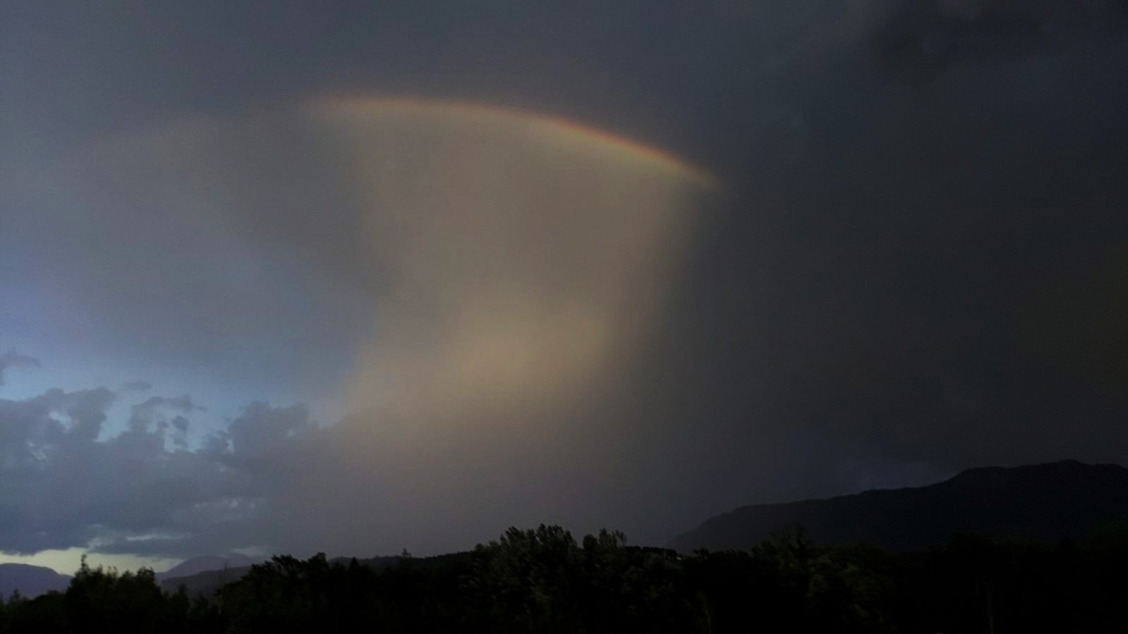 Nach dem Sargans-Gewitter-Gusel wieder zuhause auf dem noch mild temperierten Gäbris angekommen, sieht die Entwicklung über Winterthur nicht mehr so gut aus, man kann komplett durch den Regen unten durch sehen.