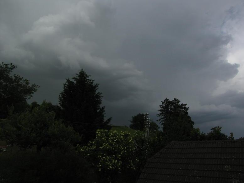 Beeindruckende "Gewitterfront" in der Zentralschweiz. Und ich krieg allmählich ein mulmiges Gefühl, weil ich in ca. 10 Minuten mein Auto aus der Garage holen, damit zu den Eltern meiner Verlobten fahren und es dann dort im freien abstellen muss...