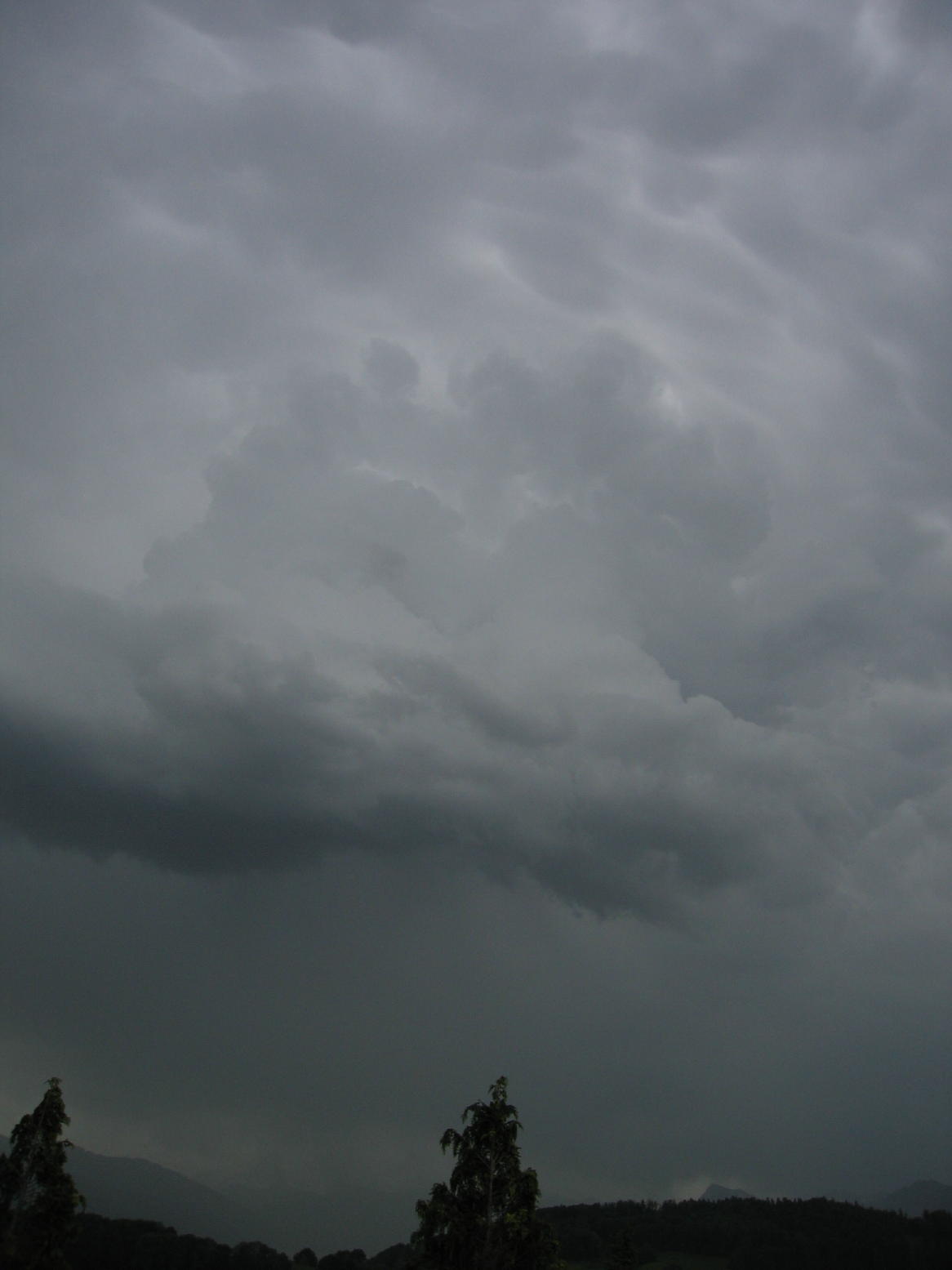 Die Zelle von Thun hat diese supergrossen Mammatus-Wolken zurückgelassen. Wiederum wurden die Bilder nicht im nachhinein überarbeitet (@ Alfred: Das bedeutet, kein externes Programm wurde eingesetzt ;-). Mit Belichtungskorrektur usw. lässt sich auch schon viel bewerkstelligen.)