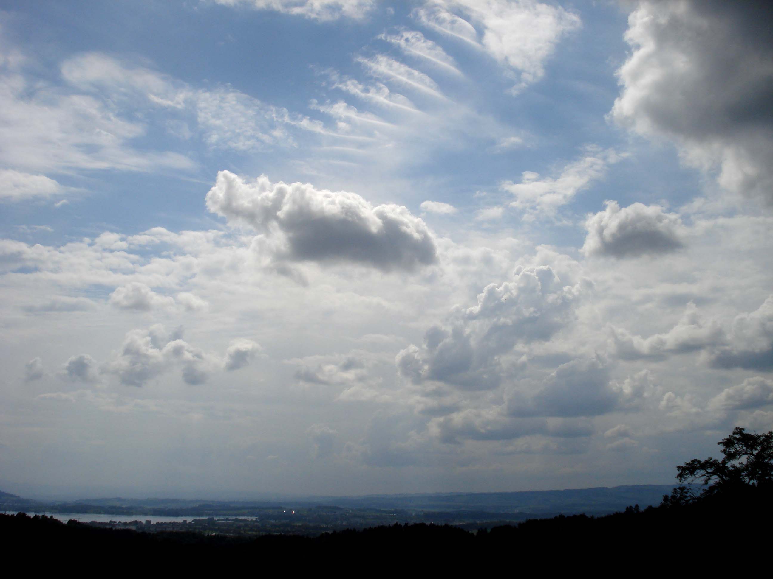 Nach einem Nickerchen und einigen Besorgungen in Luzern, Kriens und Baar, besuchte ich meinen alten Spotterplatz oberhalb von Zug, wobei sich dieser faszinierende Anblick dieser Cirrus-"Himmelstreppe" bot (Blick nach Süden um 16:21 Uhr):