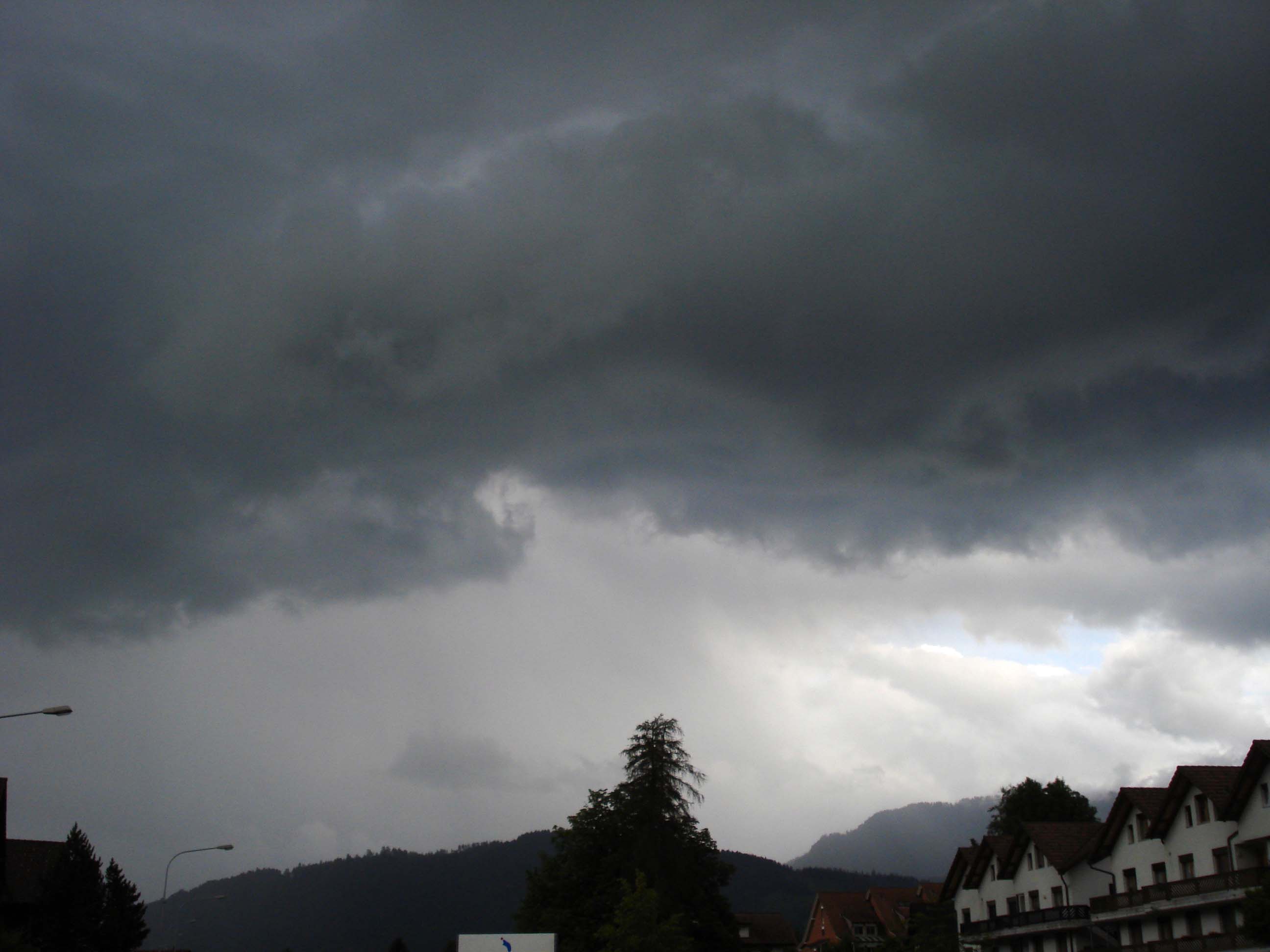 Dann sah ich auf dem Donnerradar eine ansehnliche Zelle, die von Nordwesten her auf Ägeri zusteuerte. Um 17:50 Uhr bot sich in Oberägeri dieses Bild: