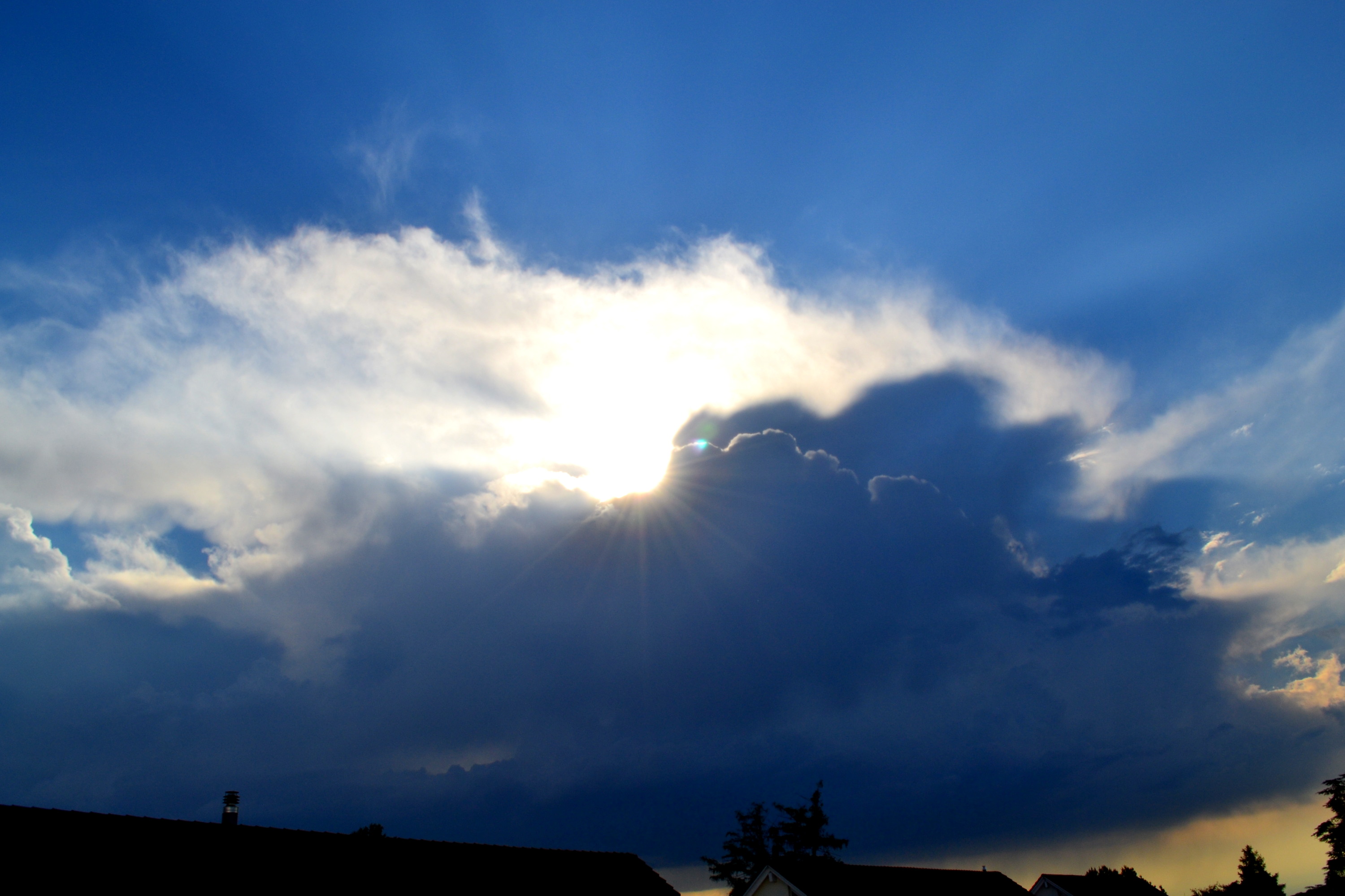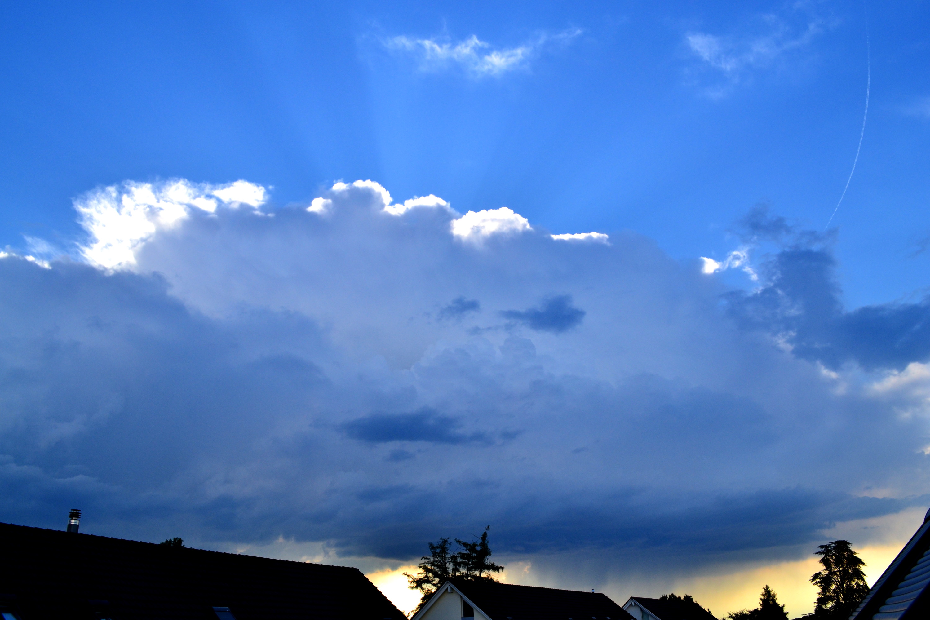 Dabei schoss ich vor allem in der Mittagspause imposante Bilder und eines davon zeigt eine Wolke, die an einer anderen Wolke "gehängt" ist aber ein Stockwerk tiefer/höher liegt!