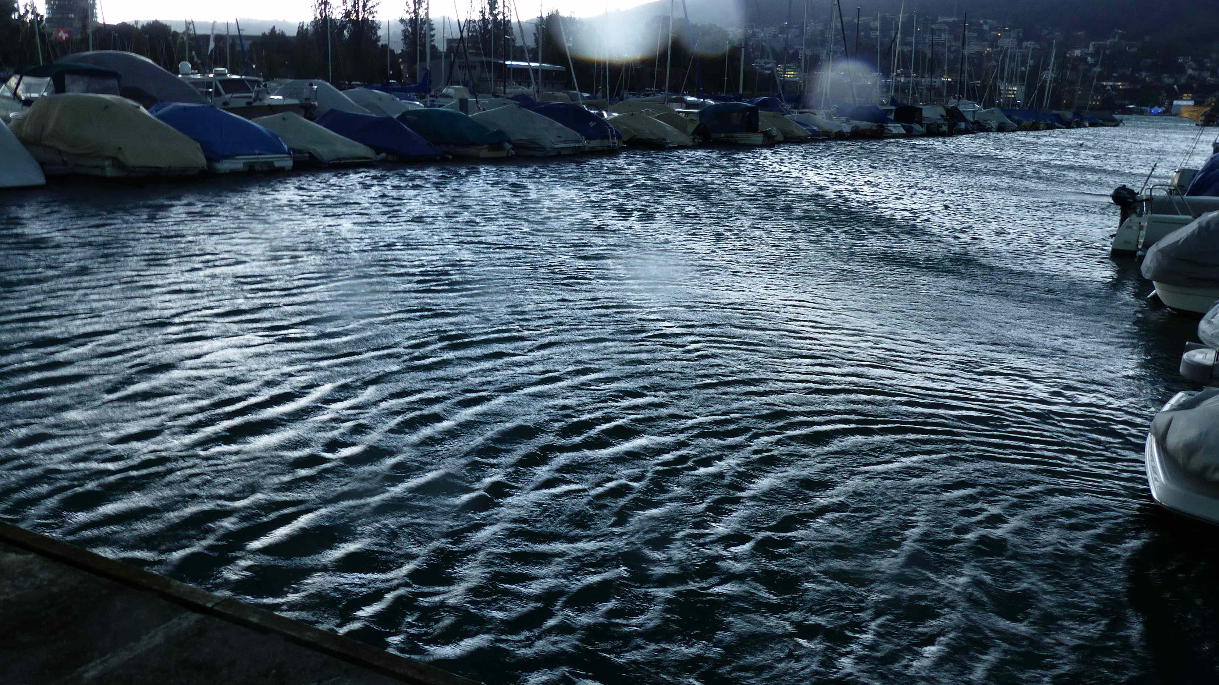 Im Segelhafen greift der Wind kräftig ins Wasser.
