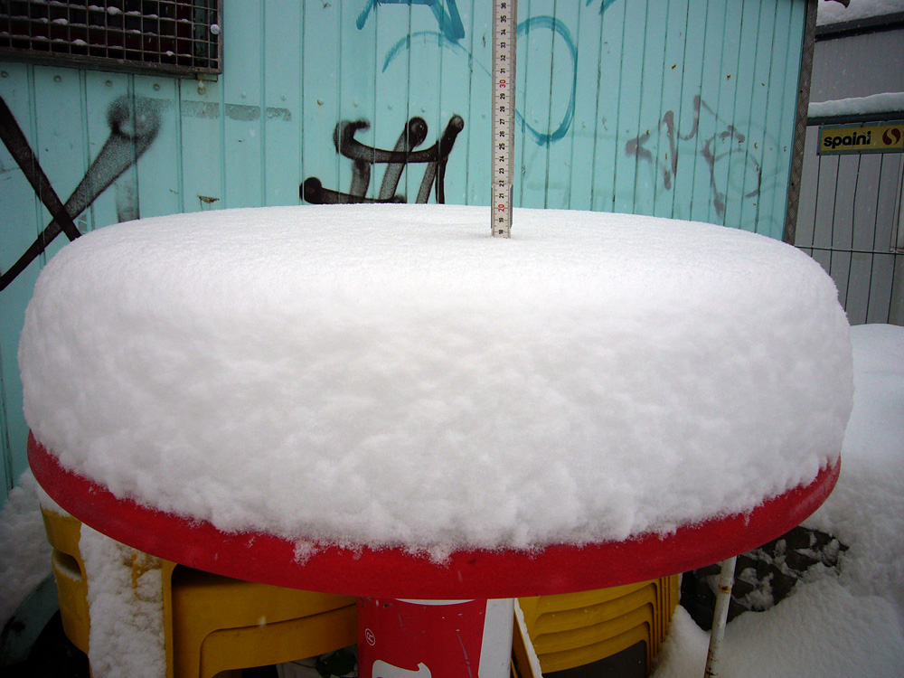 Das erinnert mich wirklich an die alten Zeiten in Steffisburg wo es mir jeweils beim Radiohören all der Schneechaos-Meldungen aus dem Rest der Schweiz (vor allem Zürich) jeweils fast das Herz gebrochen hatte