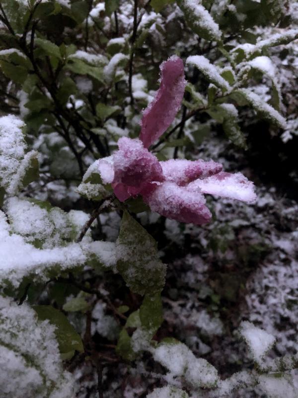 Am Mittag zog noch ein saftiger Schneeschauer auf, kurzzeitig fiel die Temperatur wieder auf - 0.1 °C - dazu nebelartiges Schneegestöber mit viel Wind und vom Dach heruntergewirbelter Schneestaub. Das war wie im Hochwinter. Das habe ich in meinem ganzen Leben noch nie erlebt so spät im Jahr.