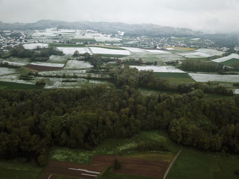 Es hat gestern um ca 17 Uhr bereits mit Schnee begonnen, durch die Intensität wurde es rasch weiss (Ausnahme natürlich dort, wo der warme Boden wirken konnte).