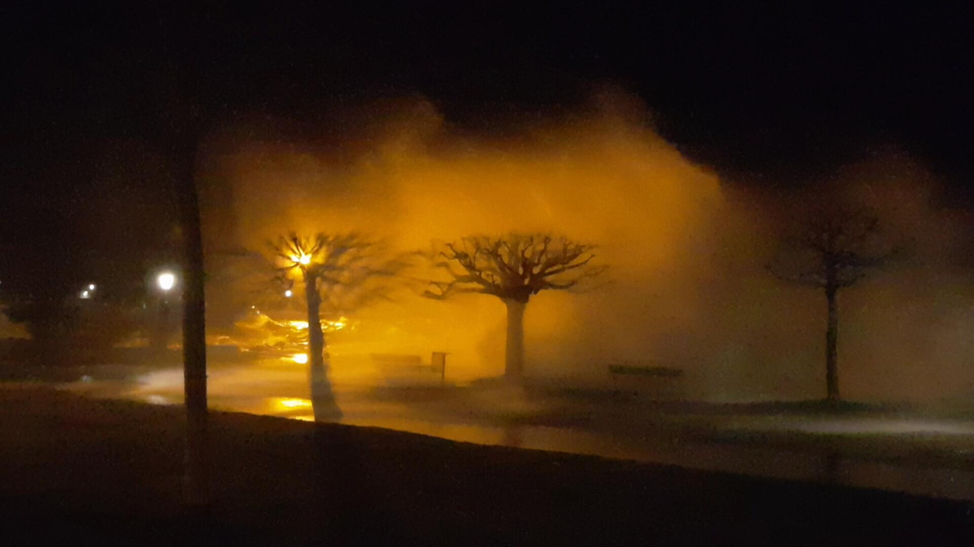 Heut morgens früh um halb 4 war ich in Zug. Wenn man schöne Sturmmotive fotografieren und filmen möchte ist Zug bei Westwindsturm eine gute Adresse. Nur leider fehlt in der Nacht das Licht, so dass die Bilder keine Topqualität haben. Aber spektakulär sieht es aus.