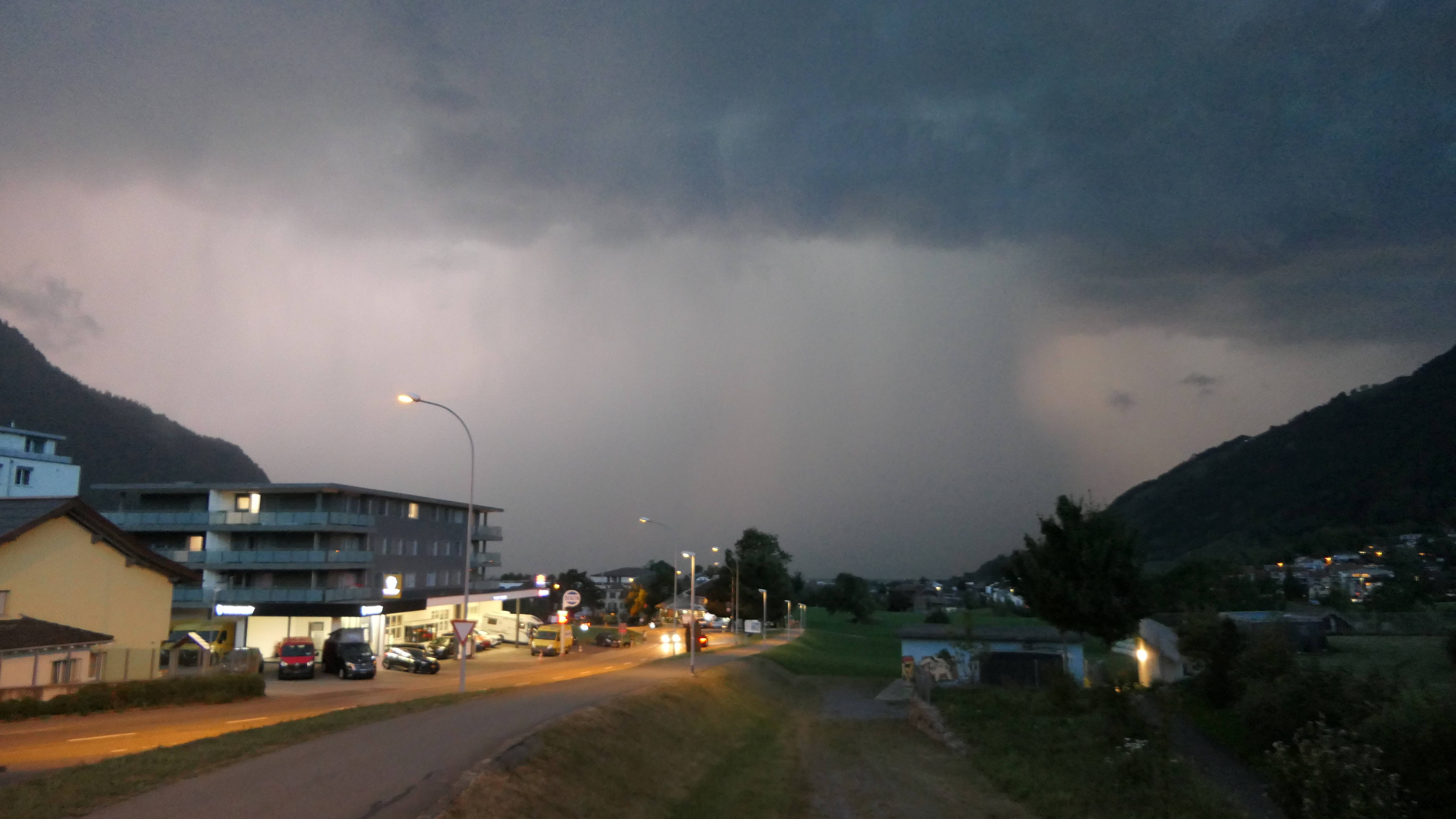 Es war eh zu heiss für grosse Touren, also Fahrt runter an den Walsensee und via Sargans nach Untervaz direkt unter die Wolken, wo es mit mehreren kurzen gewittrigen Schauern endlich eine gewisse Abkühlung gab, siehe früheres Posting.