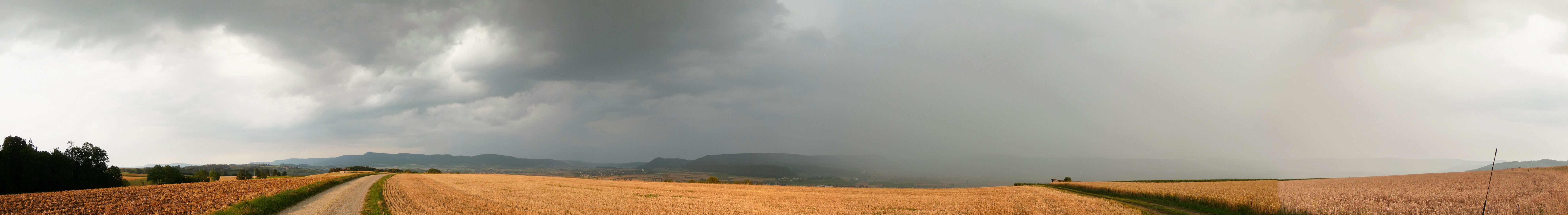 TRozdem wollten wir der Entwicklung im Osten etwas entgegen fahren. Wir waren noch nicht lange unterwegs, da bemerkten wir bald, das obwohl die Zelle von uns weg (also nach Nord-Osten) zog, die Neubildung verstärkt im Südwesten voran ging und dadurch uns wie entgegen kam. In der Region Rafz fanden wir einen guten Platz um die Zelle bzw. deren Ansetzten im Südwesten, gut zu beobachten.