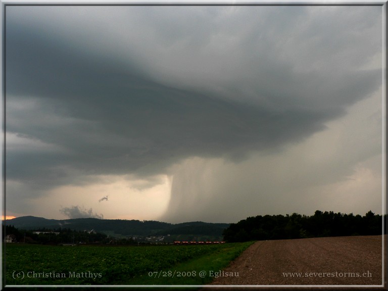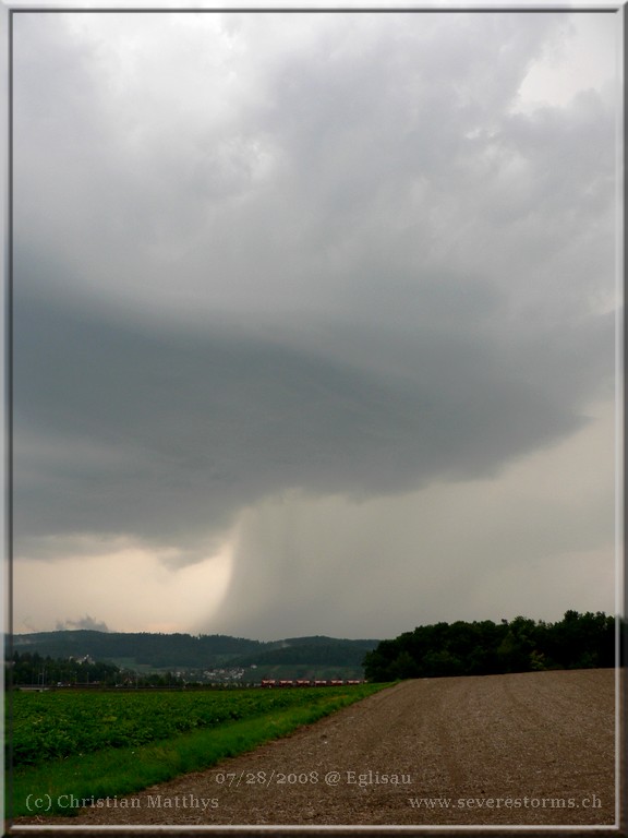 In Bern durfte ich auf der A6 heftigen Niederschlag miterleben, doch die Zelle Richtung Emmental zu verfolgen schien mir aussichtslos. So machte ich mich auf den Weg Richtung Osten, wo sich Crosley in Aarau zu mir gesellte. Irgendwo nach dem Brüttiseller Kreuz trafen wir auf Chrigi und O’Neil.