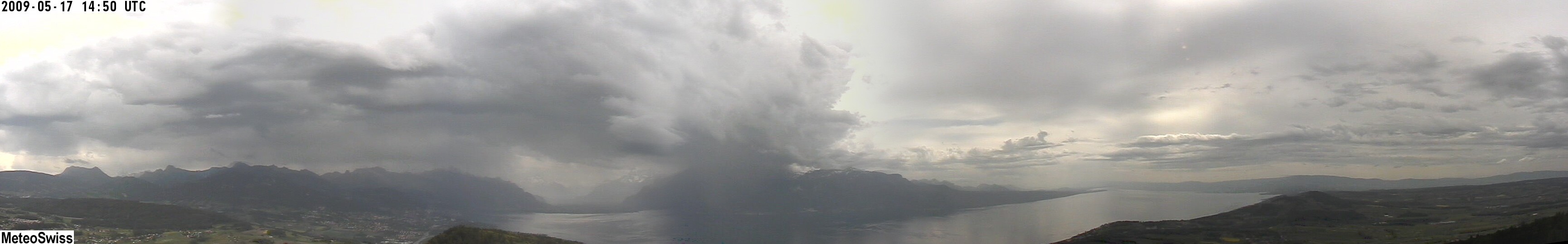 Voici une image webcam avec vu du Mt. Pélerin sur l'orage qui s'approche: