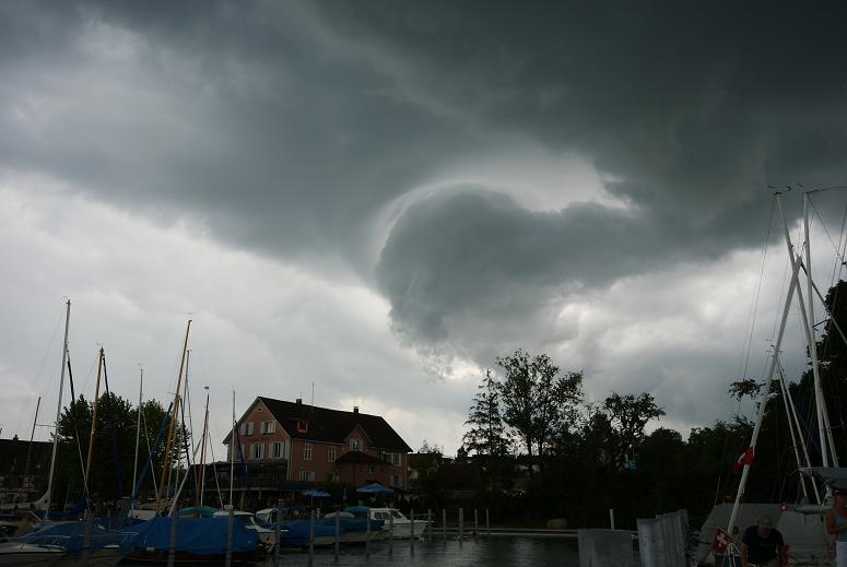 neuen Hafen Altnau ... innert 1h mächtige Quellungen und Verklumpung zu Multizellen-TSRA: