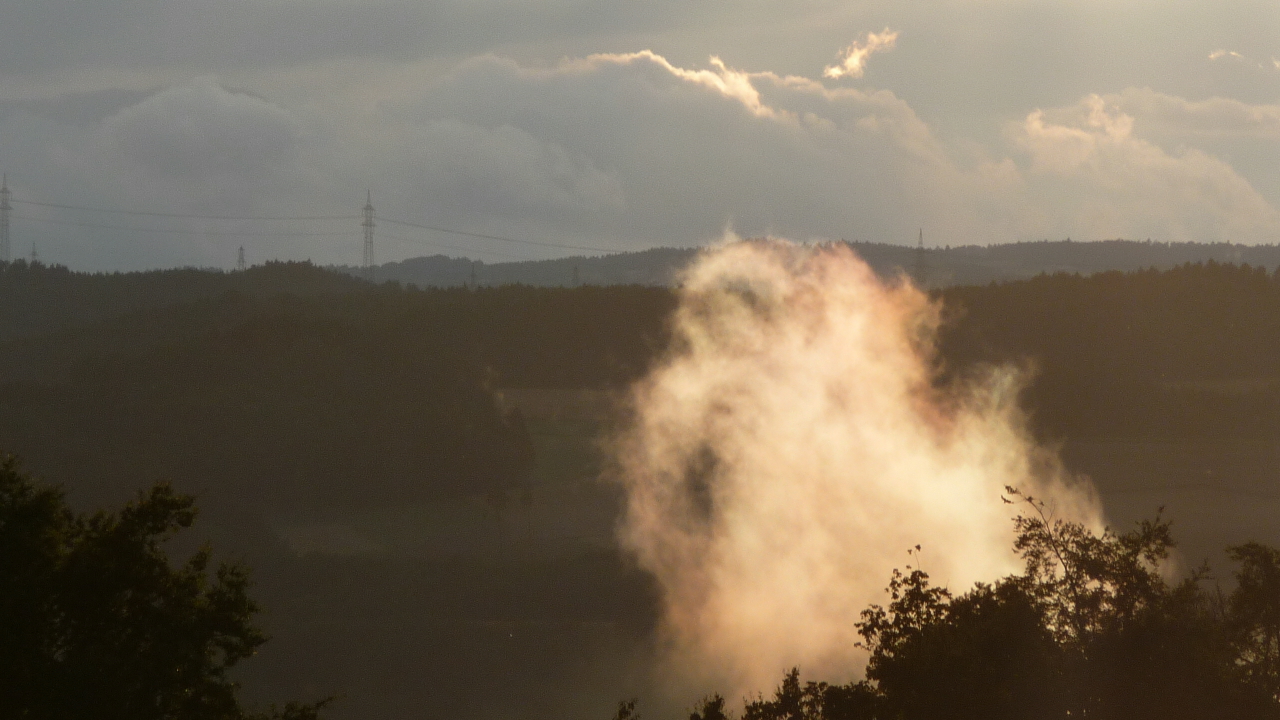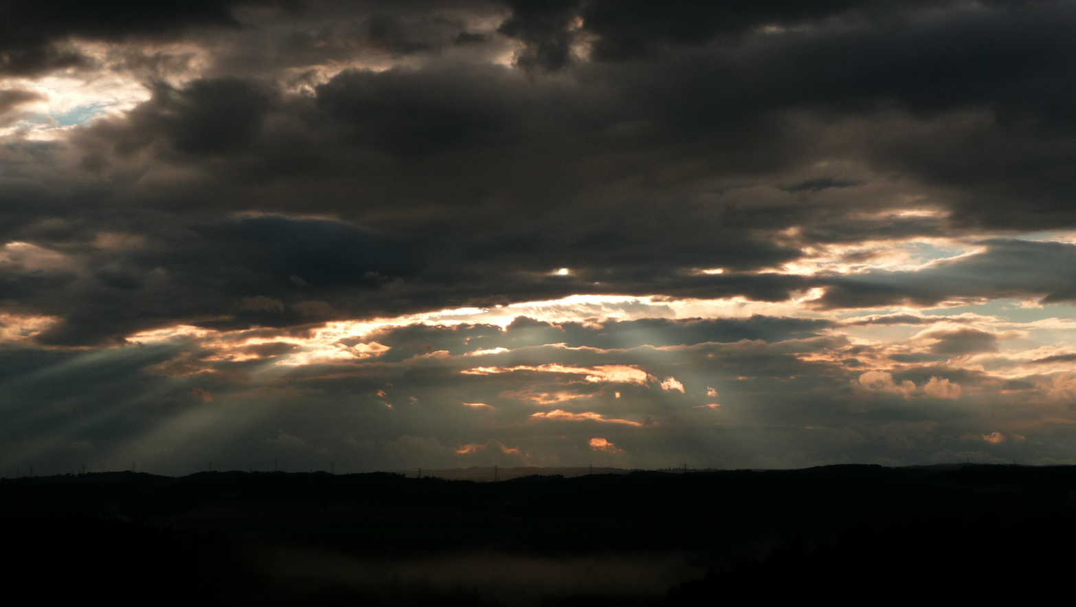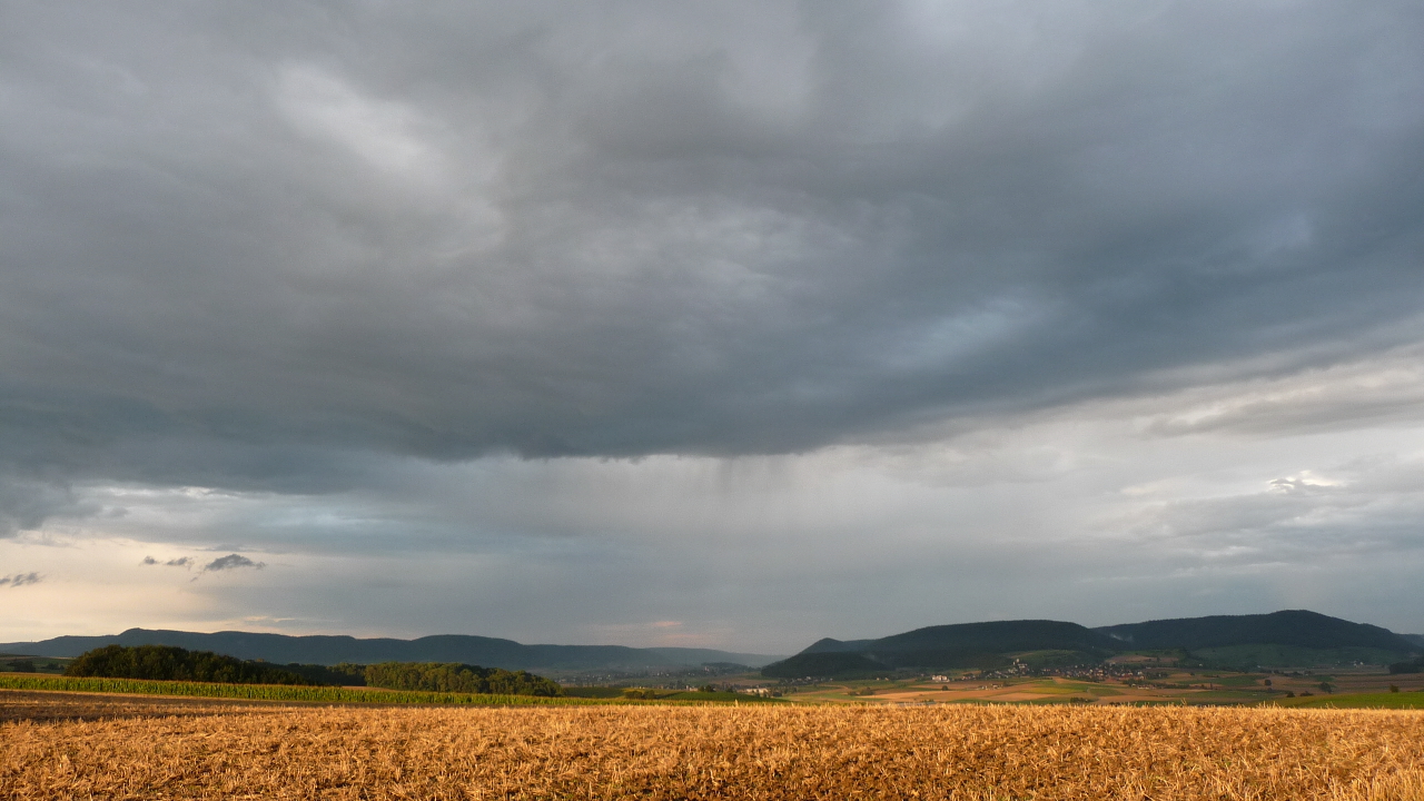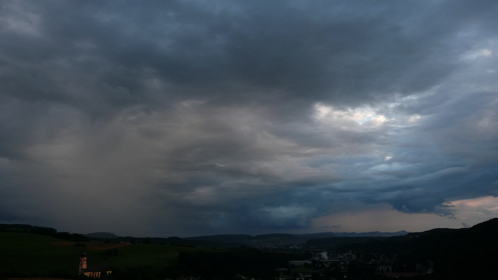 Kaum waren wieder ein paar Gewitterzellen durchgezogen, wurde bereits der Blick auf die nächsten frei, hier der Blick Richtung Längenberg um 13:23: