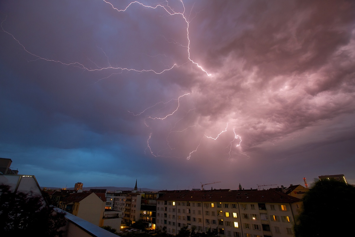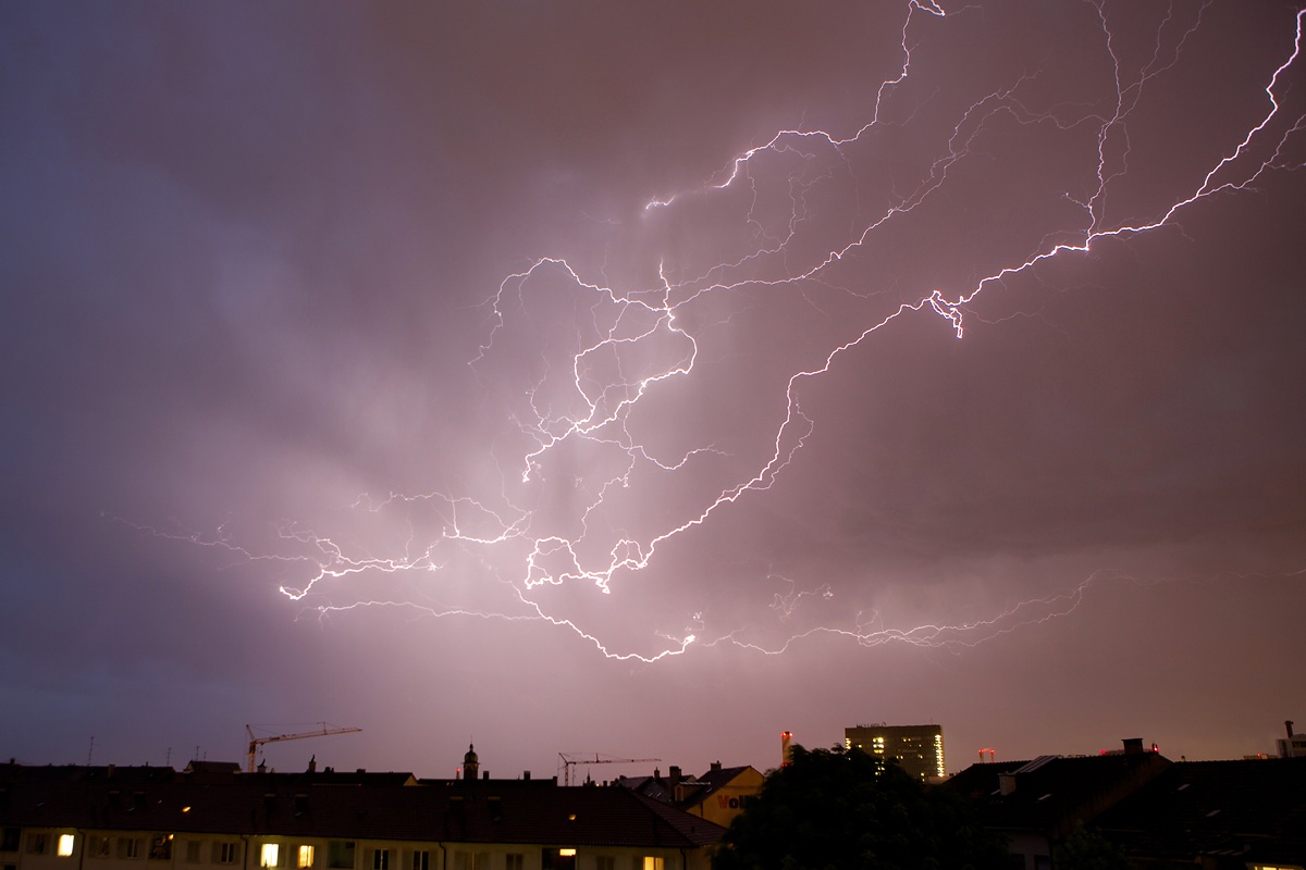 Hier noch einige Blitzbilder des Gewitters über Basel: