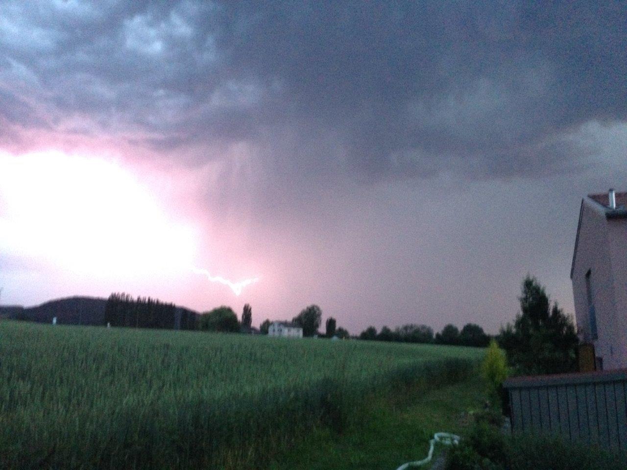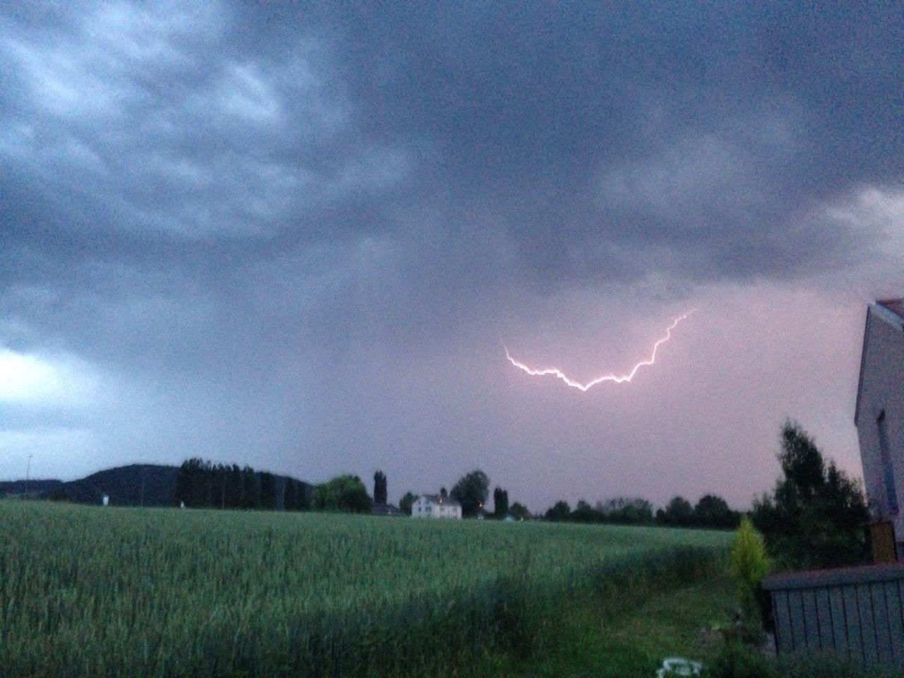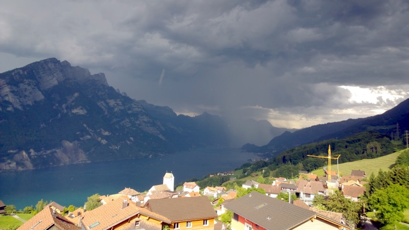 kräftiges Gewitter zwischen Flums und Walenstadt, hock unten drin, schöne Abkühlung. Gewitter dauert an. Ab und kleiner Hagel. Erdböller...