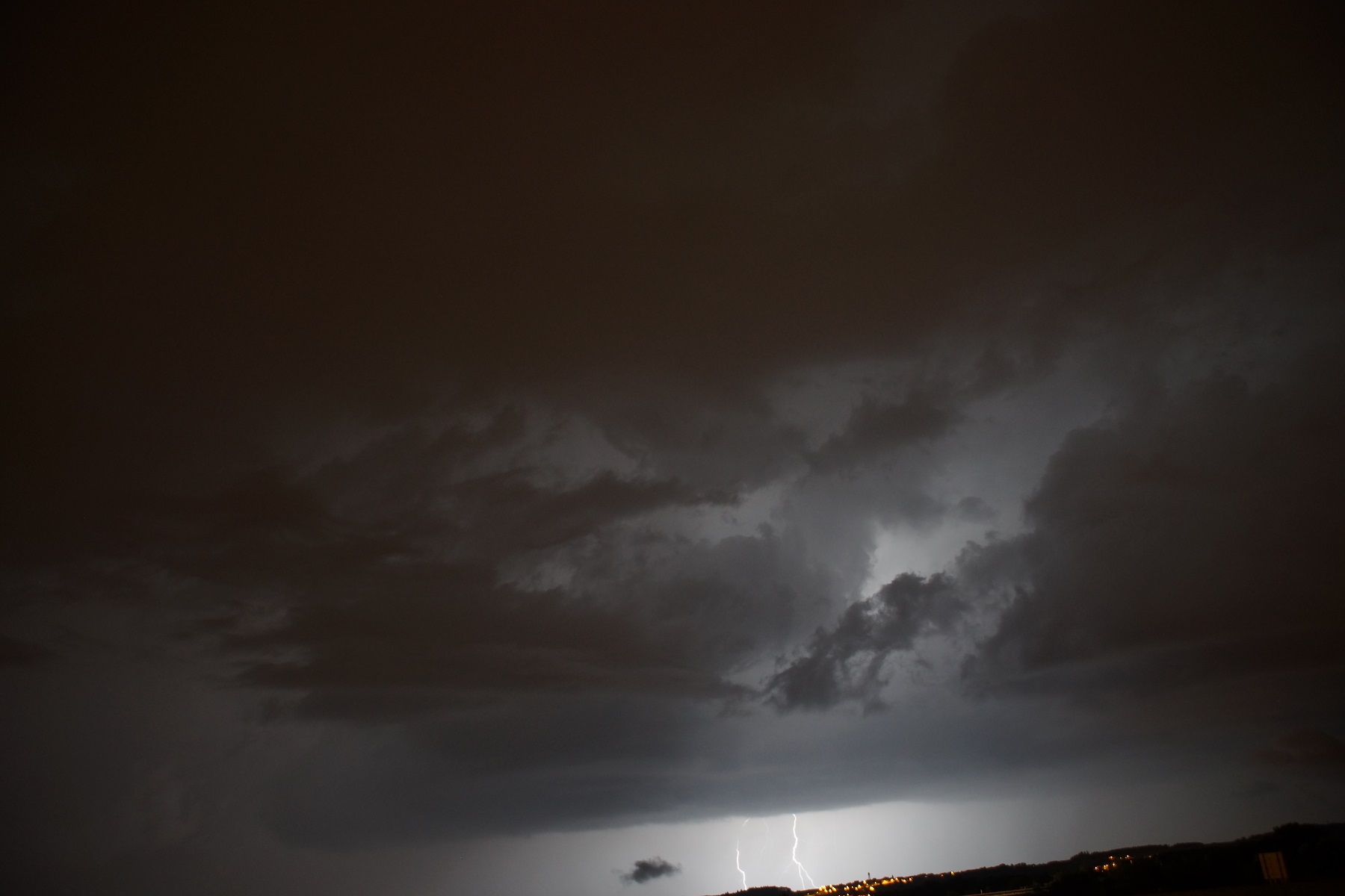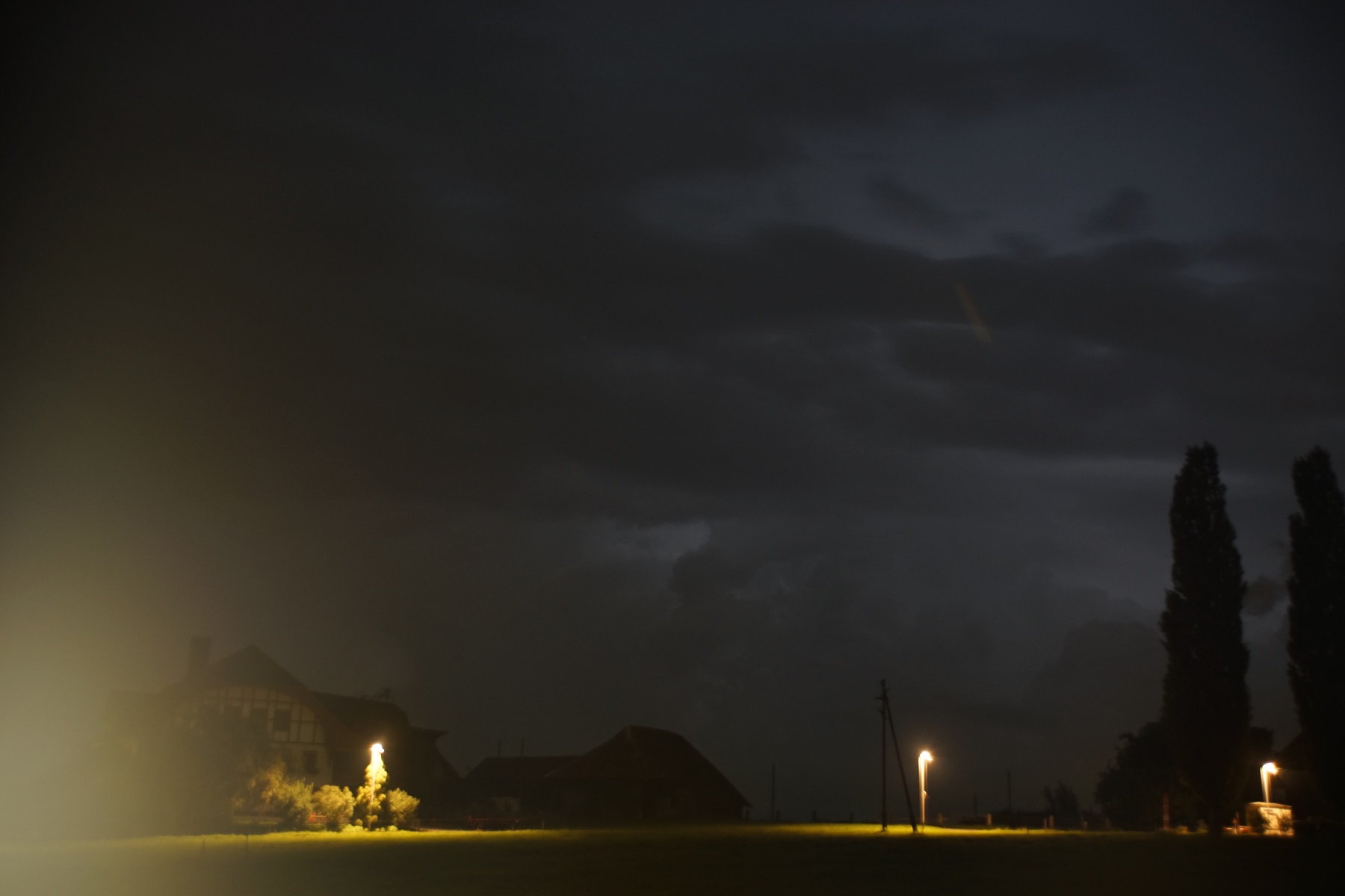 What a night wären meine englischen Kollegen wohl geneigt zu sagen. Nach einem schönen Abend wo ausser einem AC Feld nichts auf Gewitter hindeutete, kamen dann doch zwei Zellen auf den Oberländer Gewitterfriedhof. Bei der ersten Zelle war ich reichlich spät, wurde ja erst von ihr geweckt und war dann zuerst schlicht zu faul die Ausrüstung aufzustellen, in der Meinung es lohne sich ja eh nicht. Nun, die Strafe folgt auf Fuss. Immerhin ein Bild gab es:
