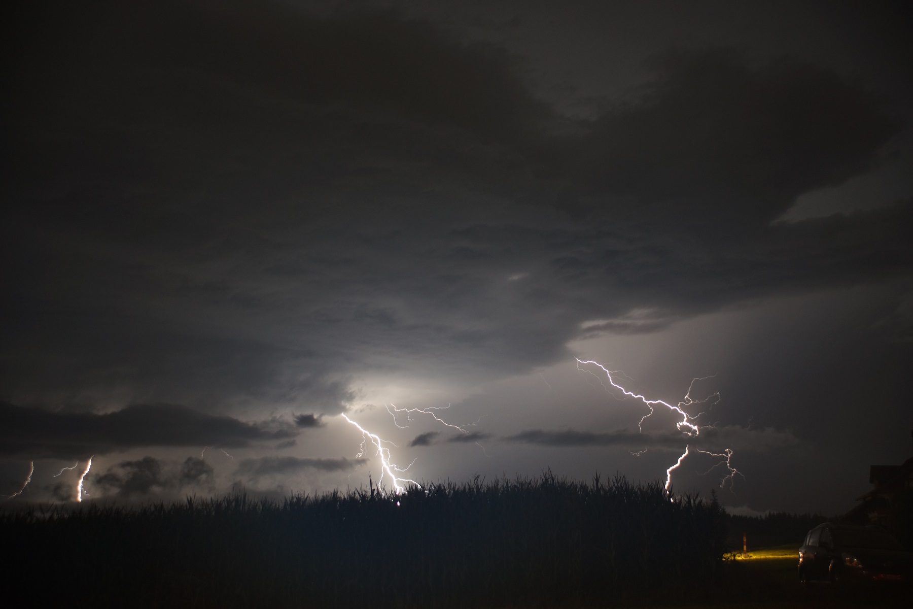 War eine spannende Nacht gestern. Die erste Zelle zog um 22:30 Uhr über Kulm. Kaum nennenswerter Regen, trotzdem viele versteckte Blitze in den Wolken. Aber es reichte für einige Fotos
