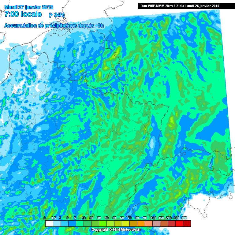 WRF 2km hat die Niederschlagssummen insbesondere in den Staulagen nochmals erhöht: