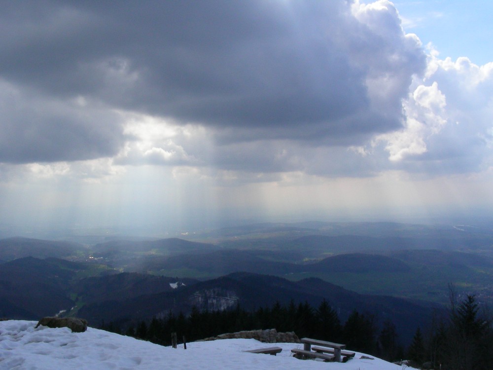 Der Blick über den Schwarzwald/schwäbische Alb und auf die dortigen Zellen war dementsprechend "verquollen", so dass ich mich wieder auf den Weg ins Markgräflerland machte. Dort angekommen ein Blick zurück auf den Blauen, ob sich das warten vielleicht doch gelohnt hätte?