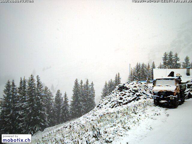 Der Schneefall in Innertkirchen und Interlaken lässt sich leider nicht mehr dokumentieren, man sieht auf dem Webcam-Bild nichts. Trotzdem ist dieser Umstand mehr als nur krass. :O Letztes Jahr hat es fast exakt zur gleichen Zeit ebenfalls sehr tief runtergeschneit (am Morgen des 31.05.2006 schneite es in Meiringen). Wie sieht es eigentlich in Meiringen aus? Schneit es dort auch?