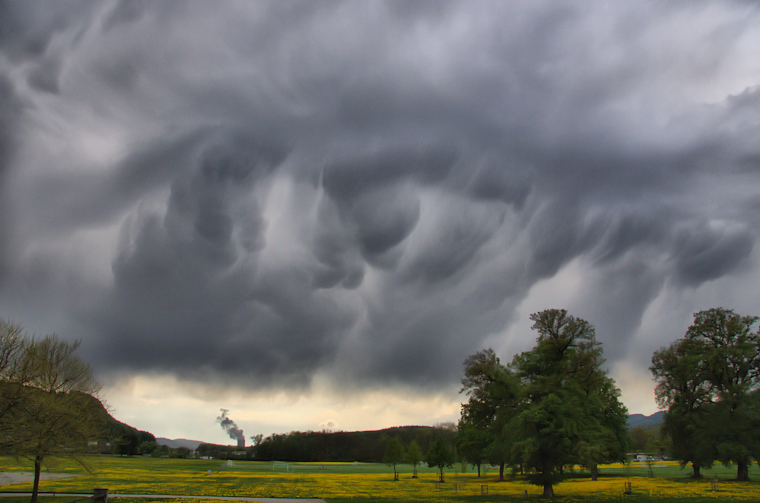Sah schon komisch aus. Ich habe Mammatus noch nie an einer so tiefen Wolkenunterdecke beobachtet (sonst waren Mammatus immer auf relativ hohen Wolken zu beobachten). Ich dachte noch, ob diese Wolken wohl noch den Boden berühren (es kam aber dann nicht dazu ;) ). Gleich hinter den Mammatus klarte der Himmel sofort wieder auf, was die Szene noch dramatischer gestalltete.
