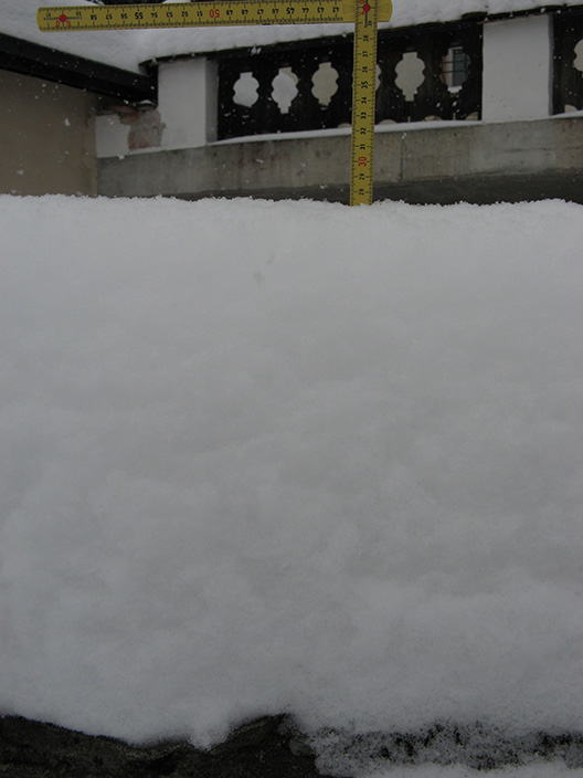 Hier gab es heute Morgen auch nochmals 2-3cm Neuschnee, wobei ein Teil heute Mittag bereits wieder geschmolzen ist, da die Temperatur sich der +1° Marke nähert. Die Gesamtschneehöhe hat sich nun bei 14-15cm "eingependelt". Heute Morgen war ich noch bei meiner Grossmutter in Fischingen (südlichste Gemeinde vom Kanton TG). Hier habe ich zwischen 25-27cm Schnee auf 620m ü. M. gemessen! :-D. Dort liegt also fast das doppelte wie hier, obwohl die Luftlinie zwischen Wilen und Fischingen nur 6km beträgt (Höhenunterschied 55m). Immer wieder erstaunlich wie sich der Stau an den Hügeln dort hinten auswirkt.