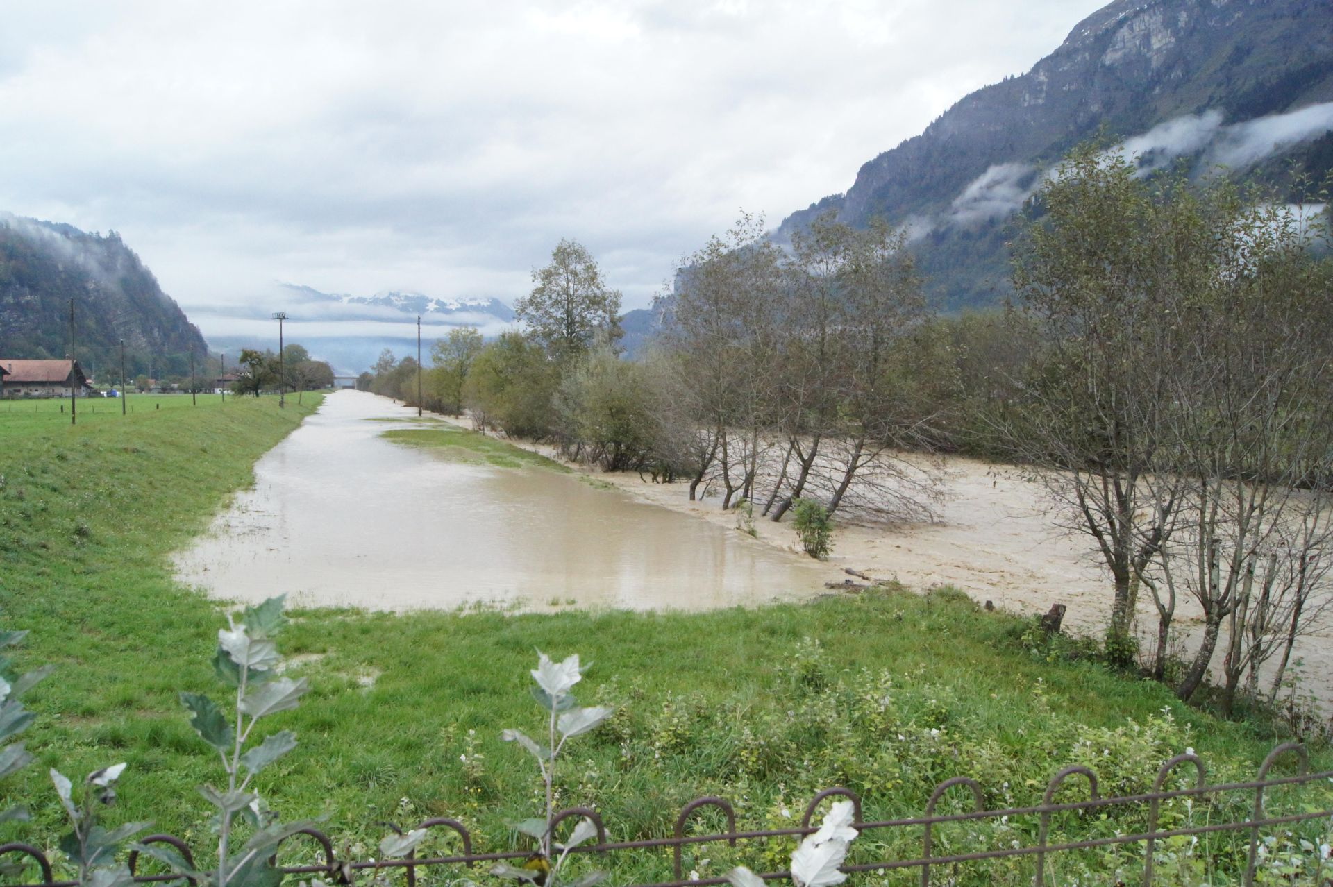 Auch im Engelbergertal trat die Engelberger Aa über das ufer und überschwemmte die Bahnlinie und einiges an Kulturland.