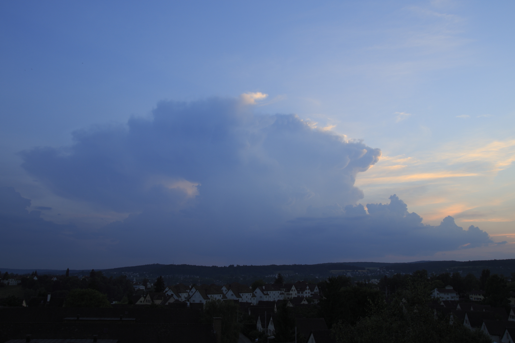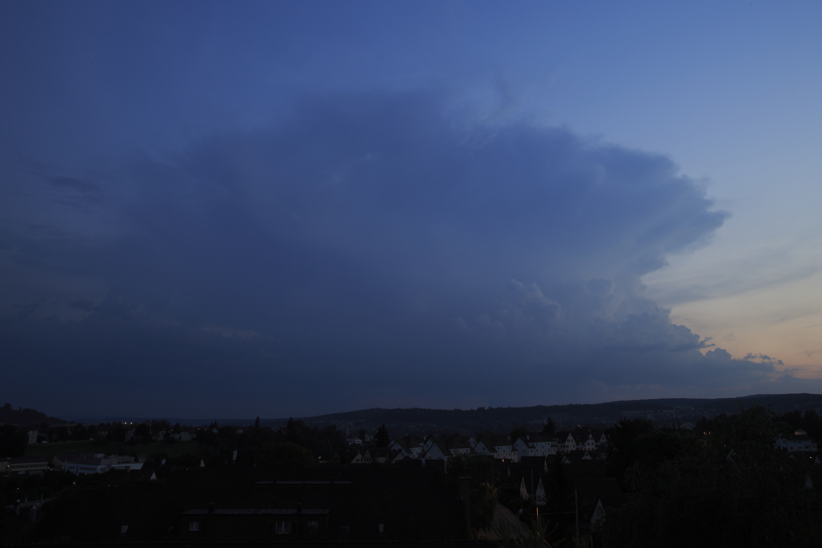 Die neue Zelle im Sundgau ist auch schon elektrisch. Der Amboss ist von Bern aus gut und alleinstehend sichtbar und flackert vor sich hin. Leider ist es noch zu hell, um auf diese Distanz gute Fotos zu bekommen...