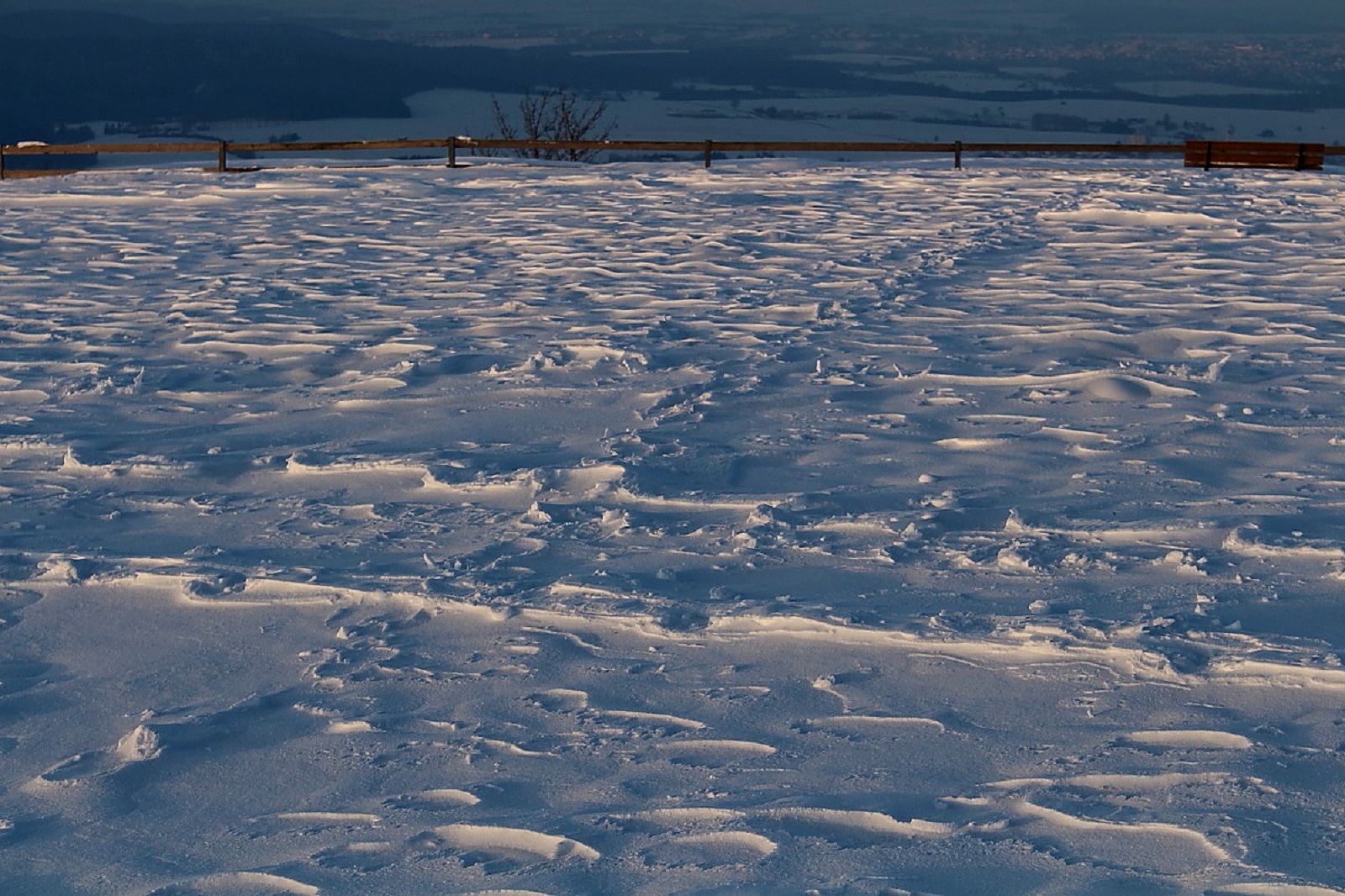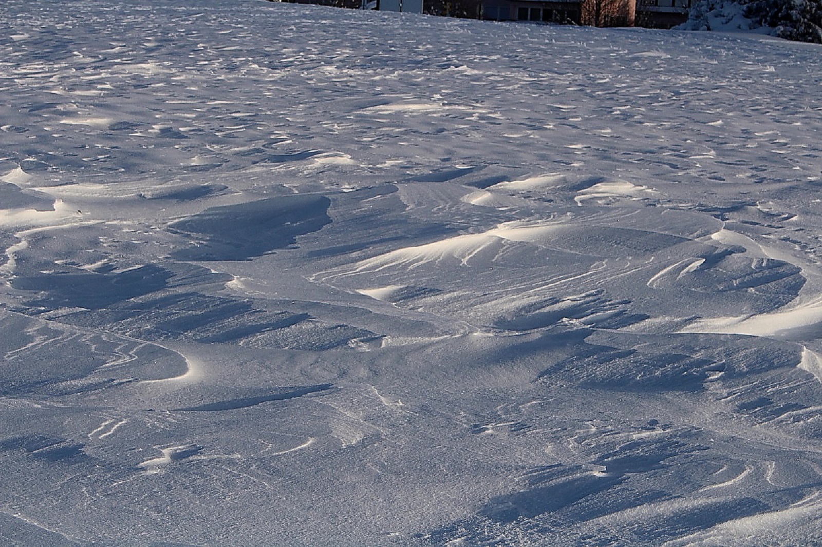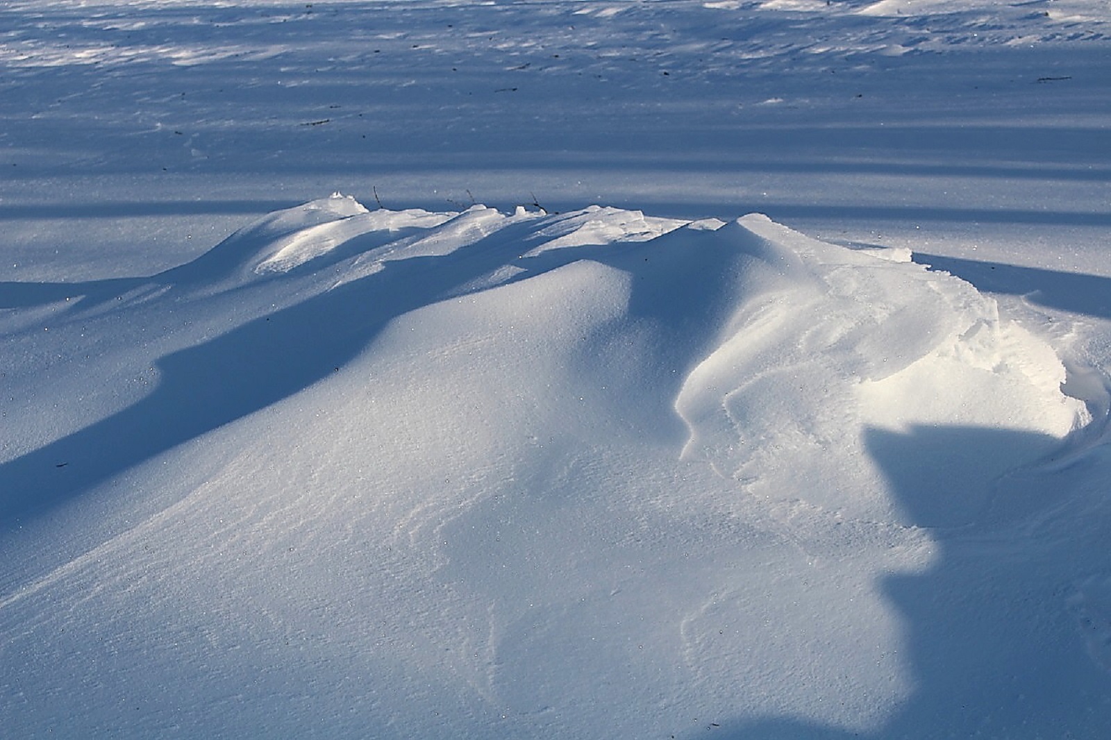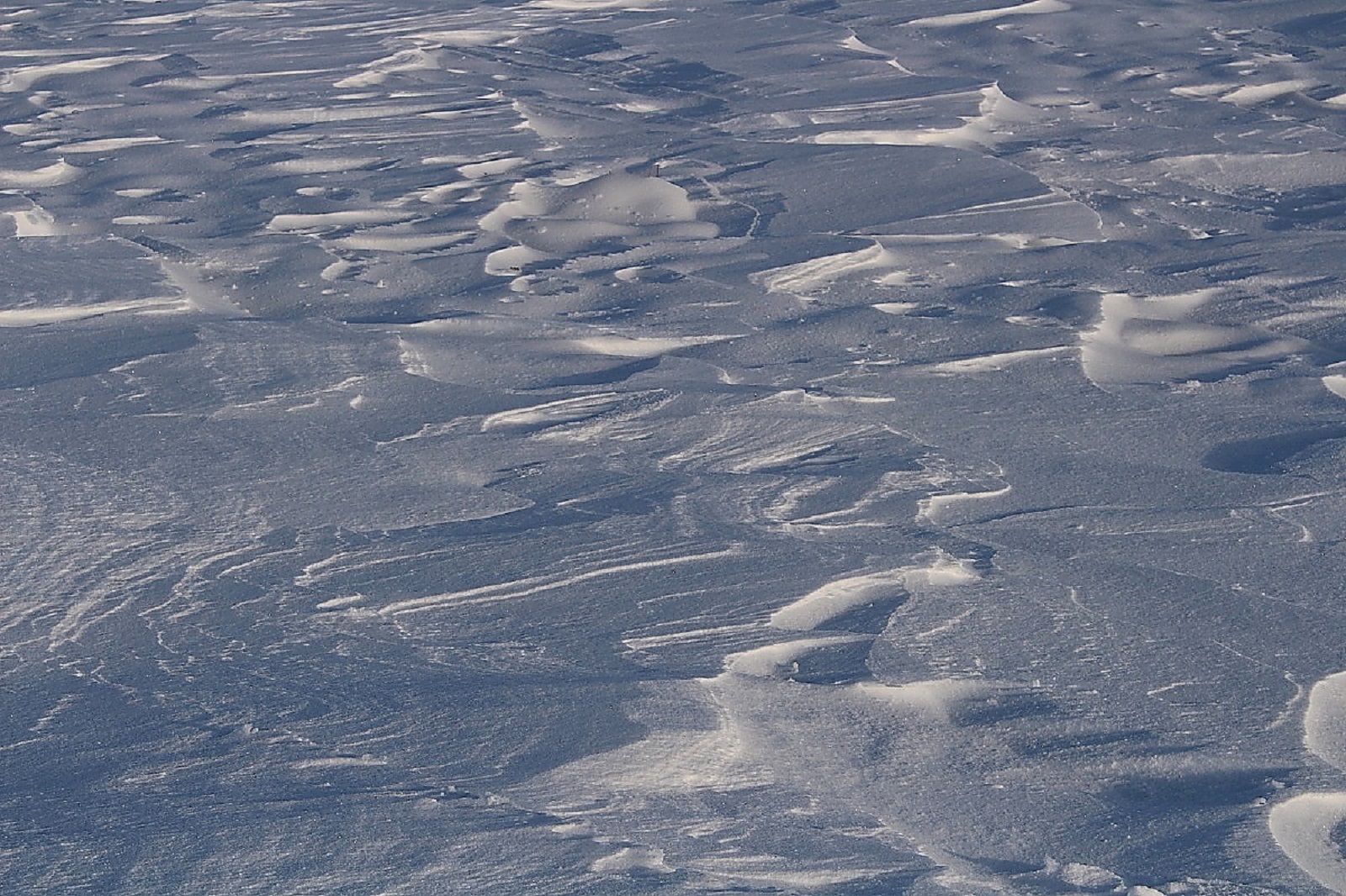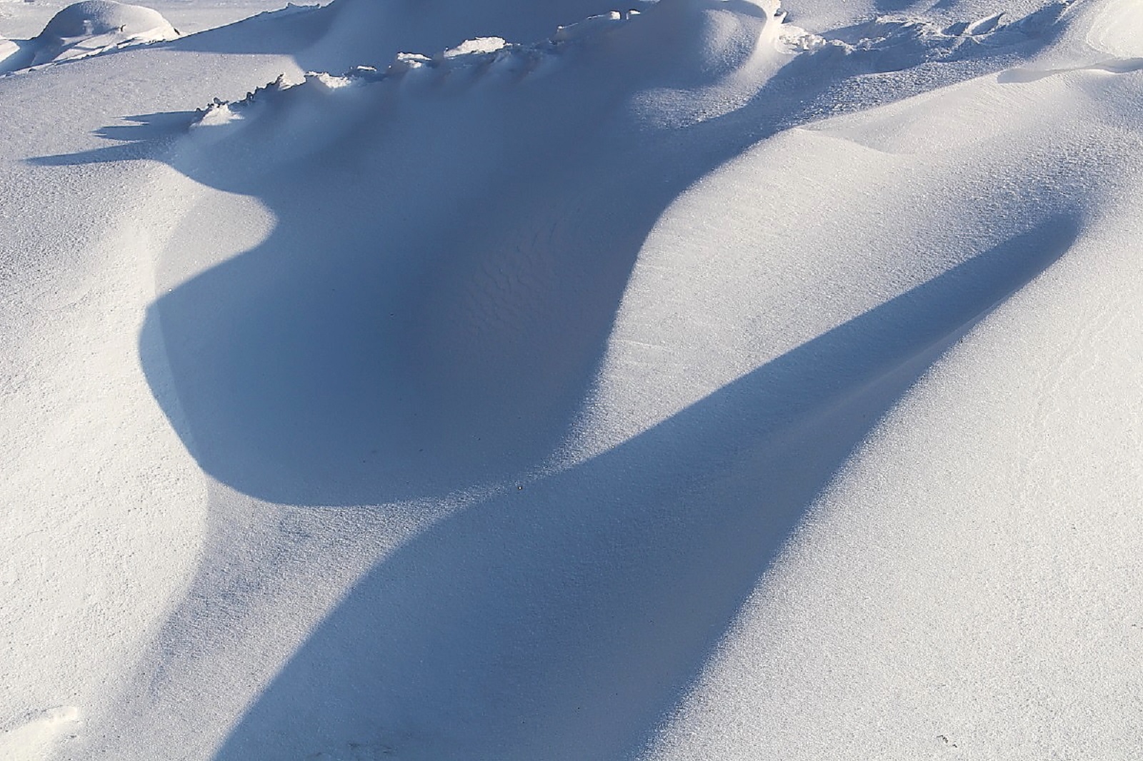 Den Schnee hatte es weiträumig verfrachtet, man konnte aber gut auf der Schneeschicht (wie auf einem zugefrorenen Teich) laufen, die die Oberfläche war durch den Eiswind sehr stabil geworden.