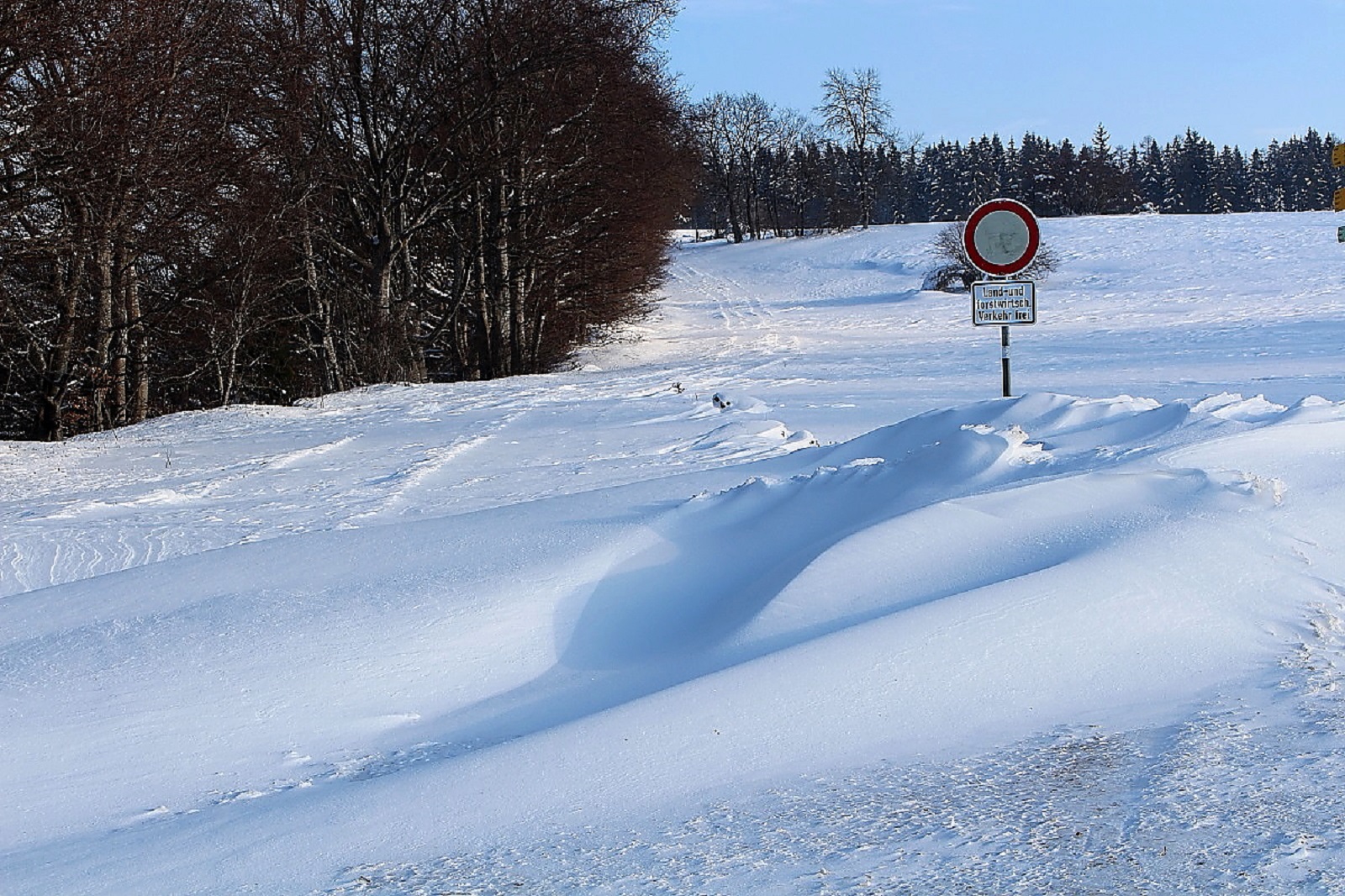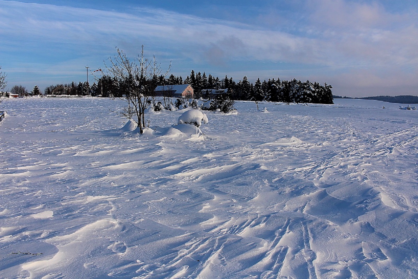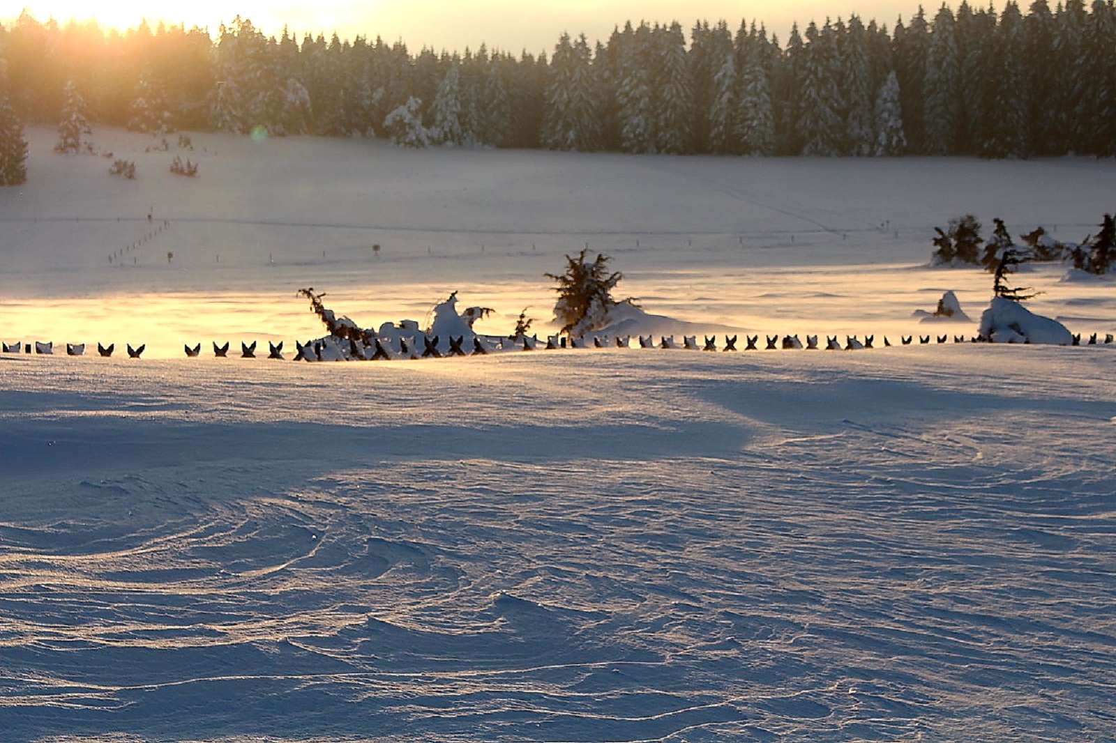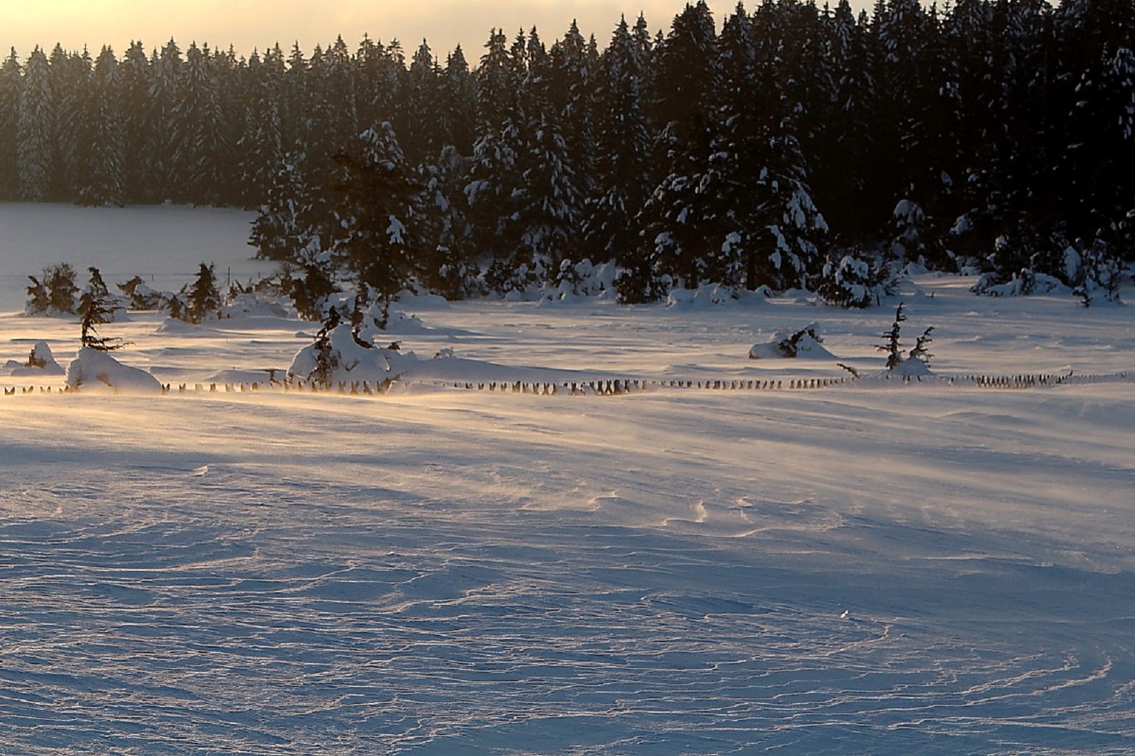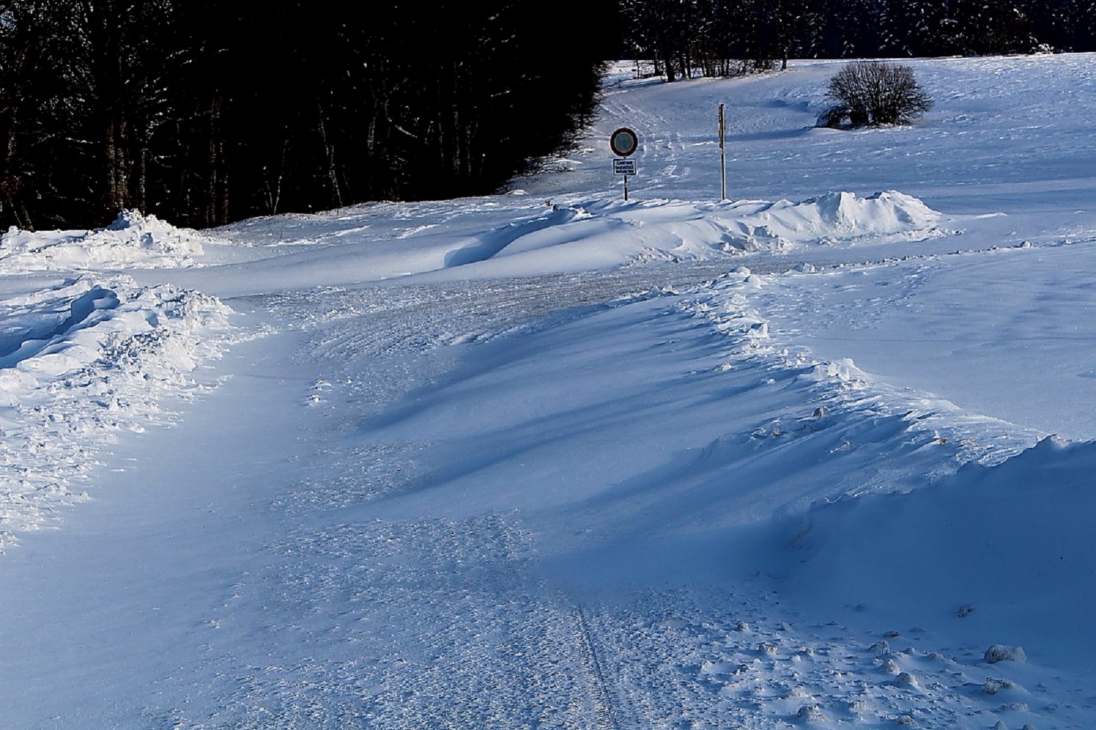 Den Schnee hatte es weiträumig verfrachtet, man konnte aber gut auf der Schneeschicht (wie auf einem zugefrorenen Teich) laufen, die die Oberfläche war durch den Eiswind sehr stabil geworden.