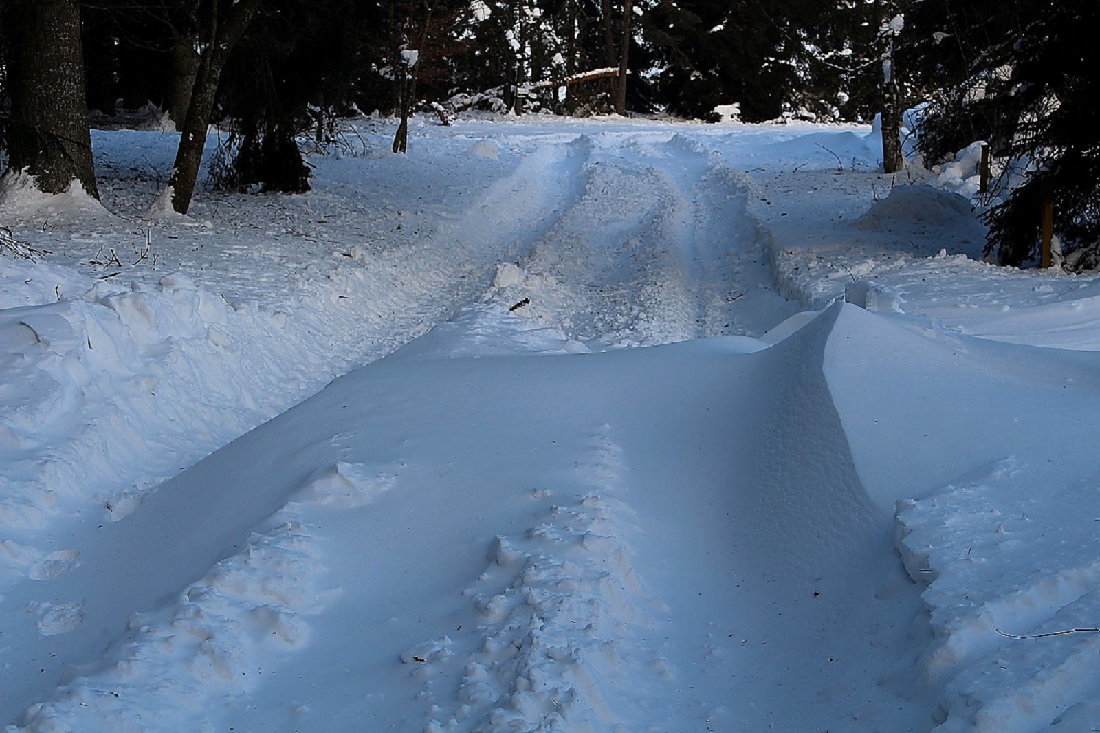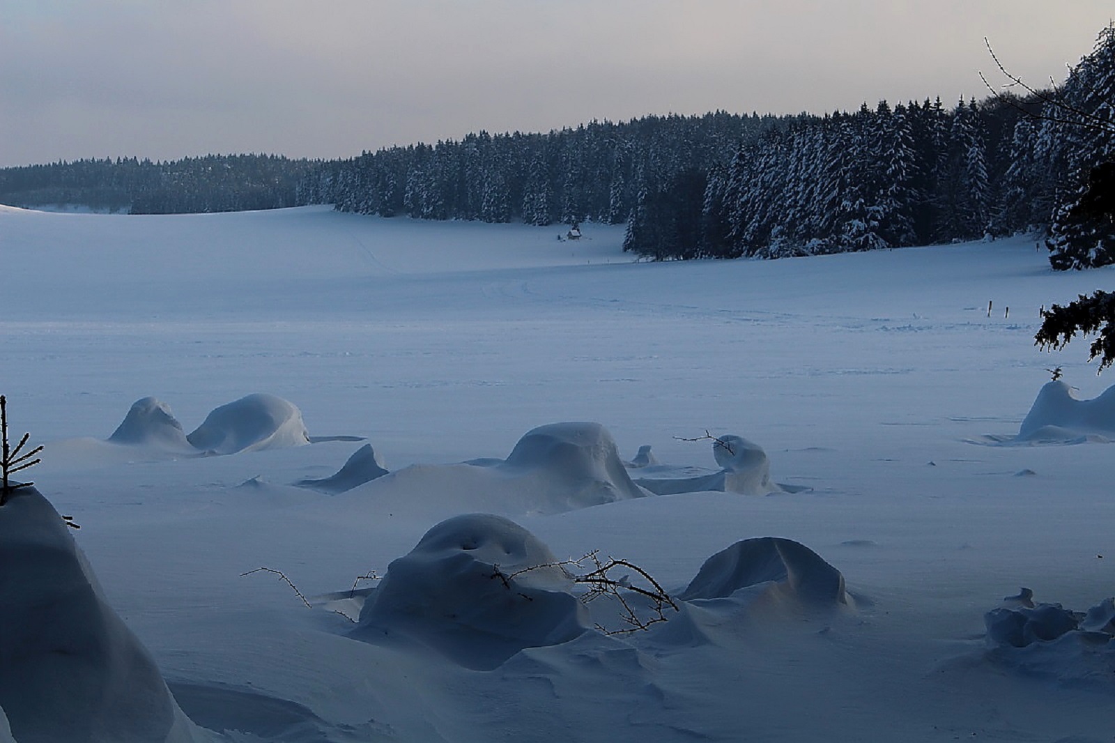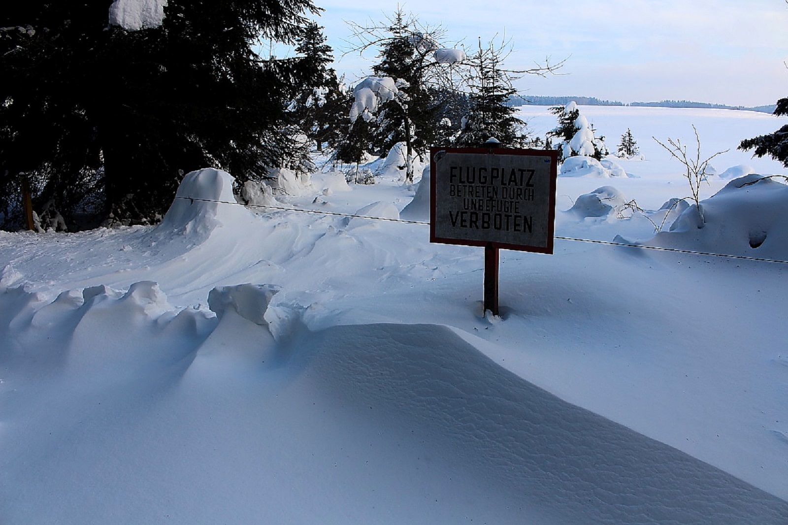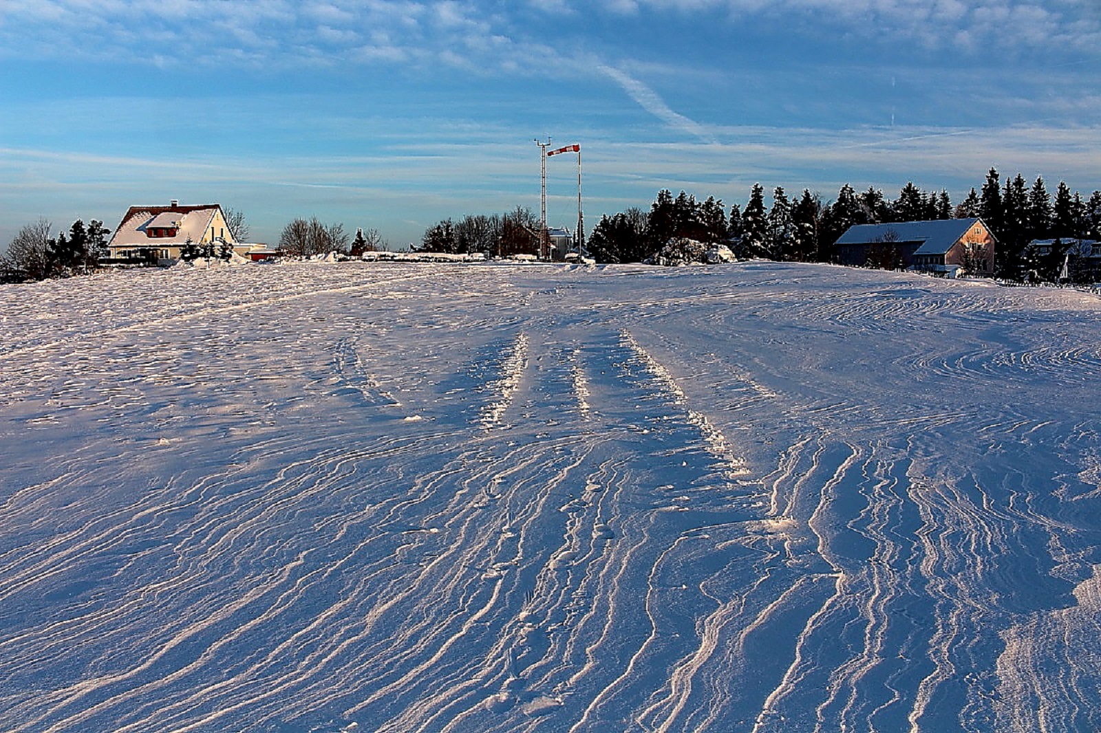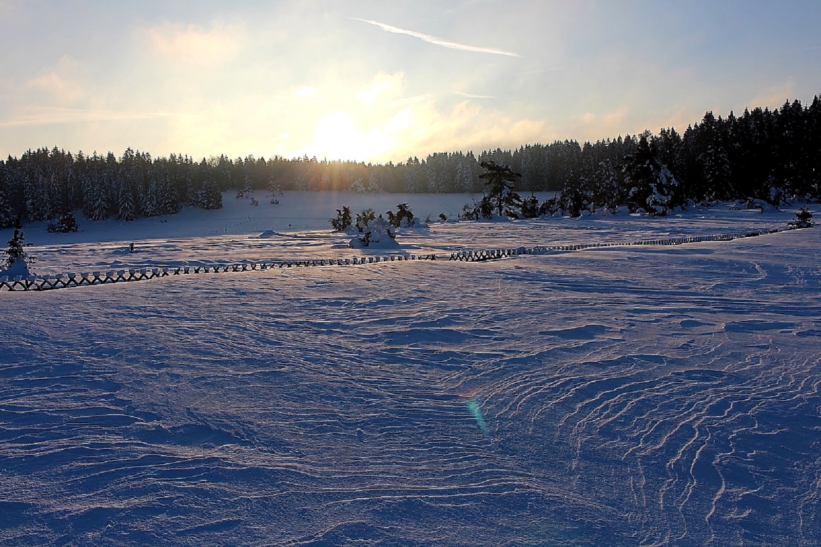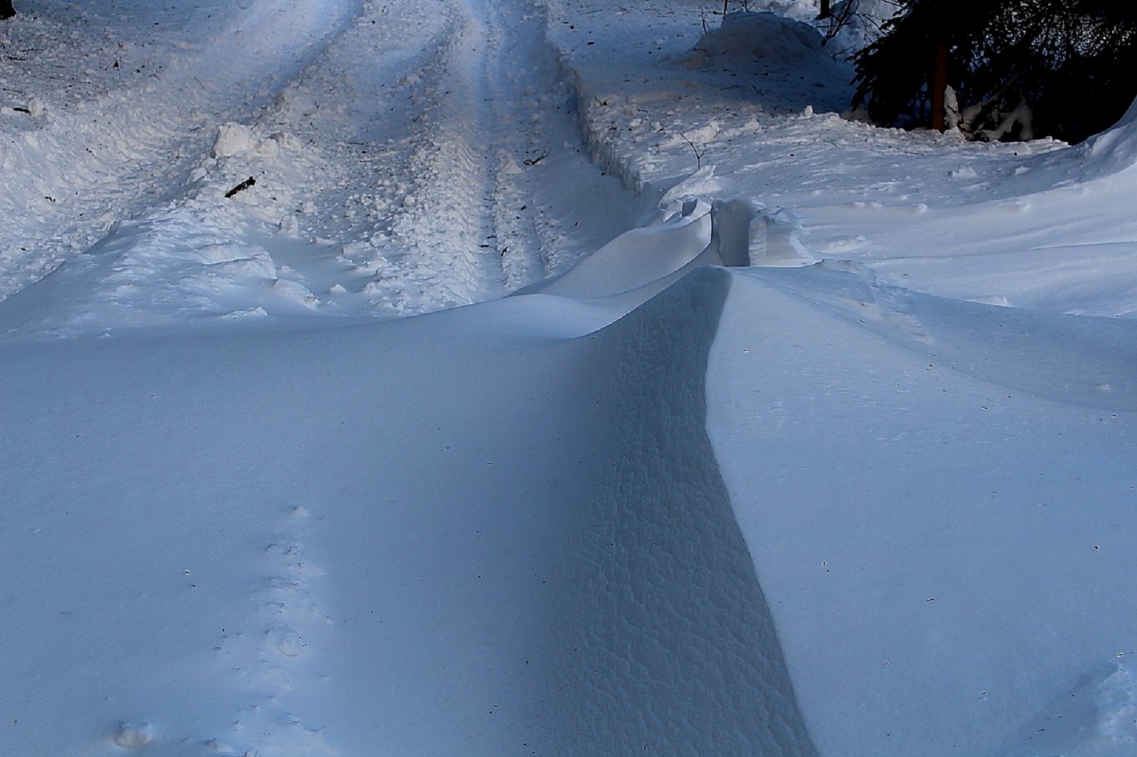 Den Schnee hatte es weiträumig verfrachtet, man konnte aber gut auf der Schneeschicht (wie auf einem zugefrorenen Teich) laufen, die die Oberfläche war durch den Eiswind sehr stabil geworden.