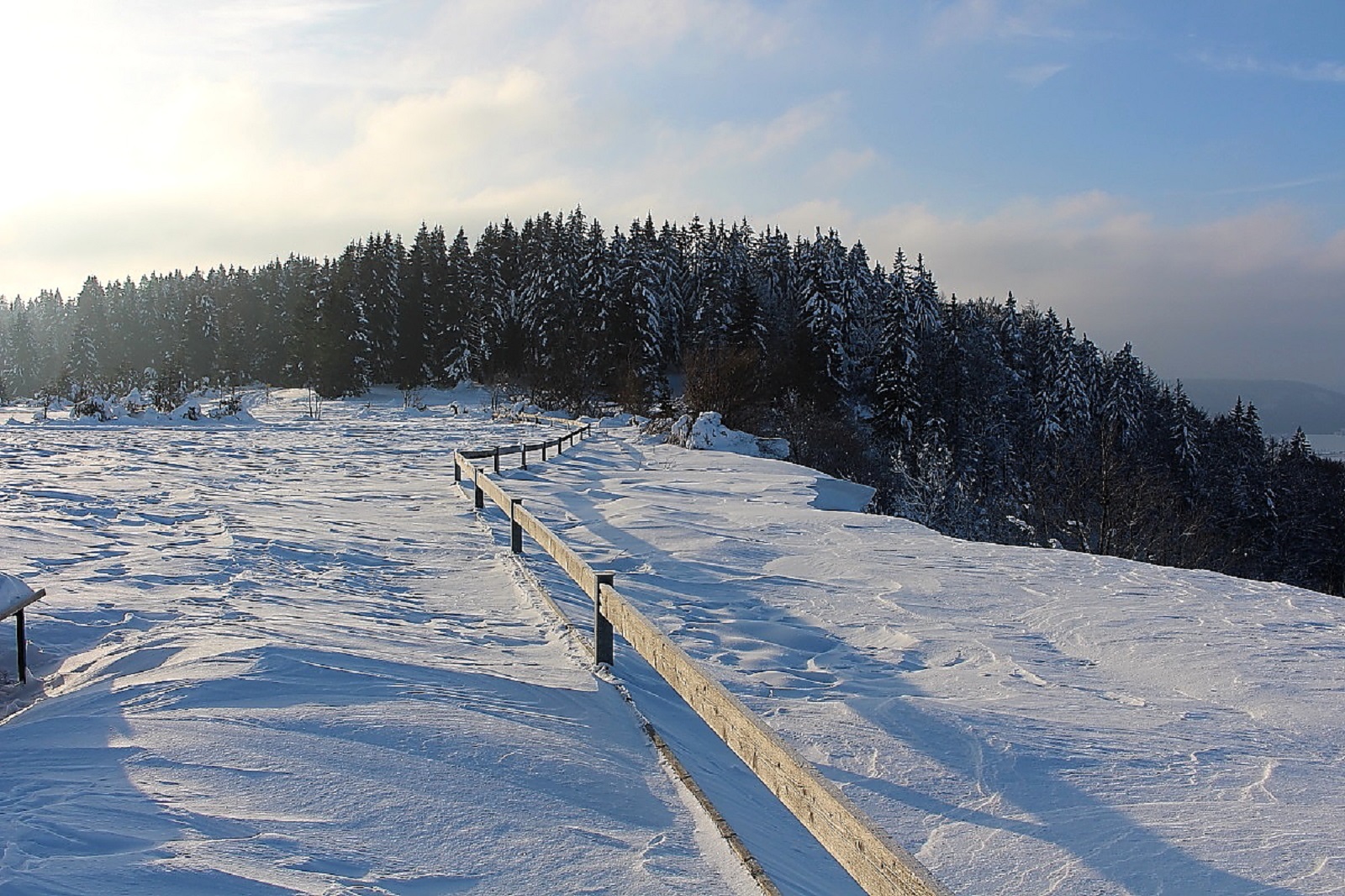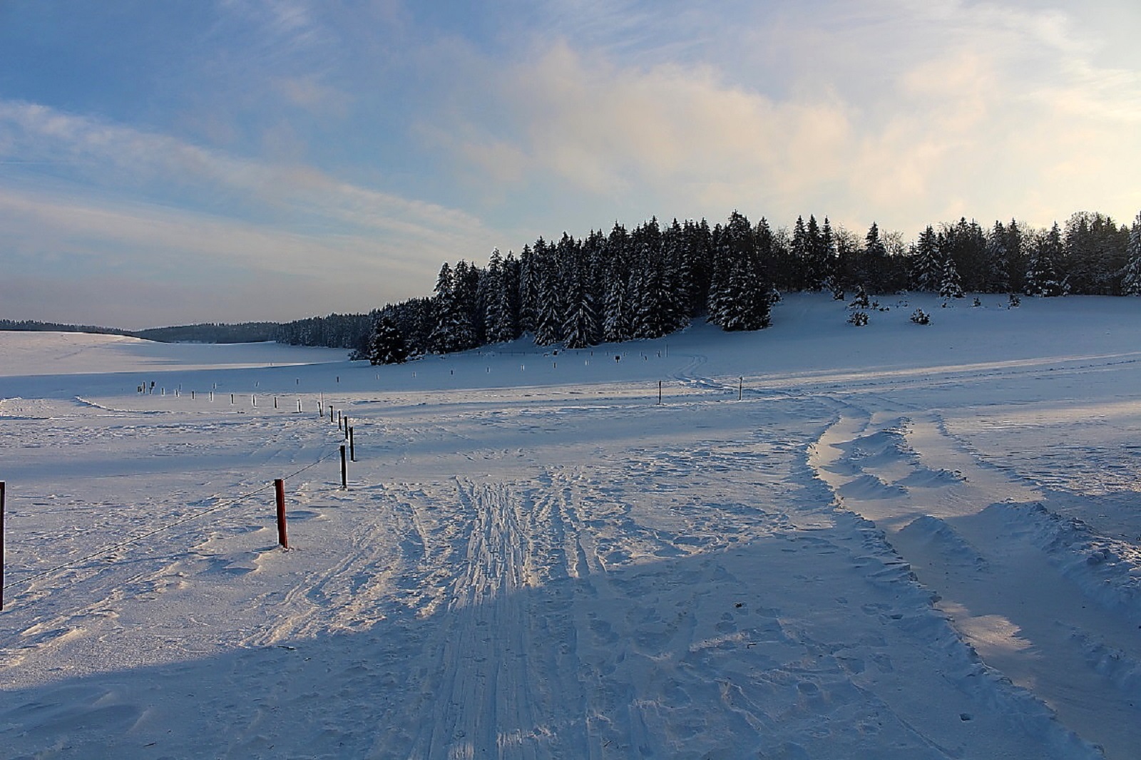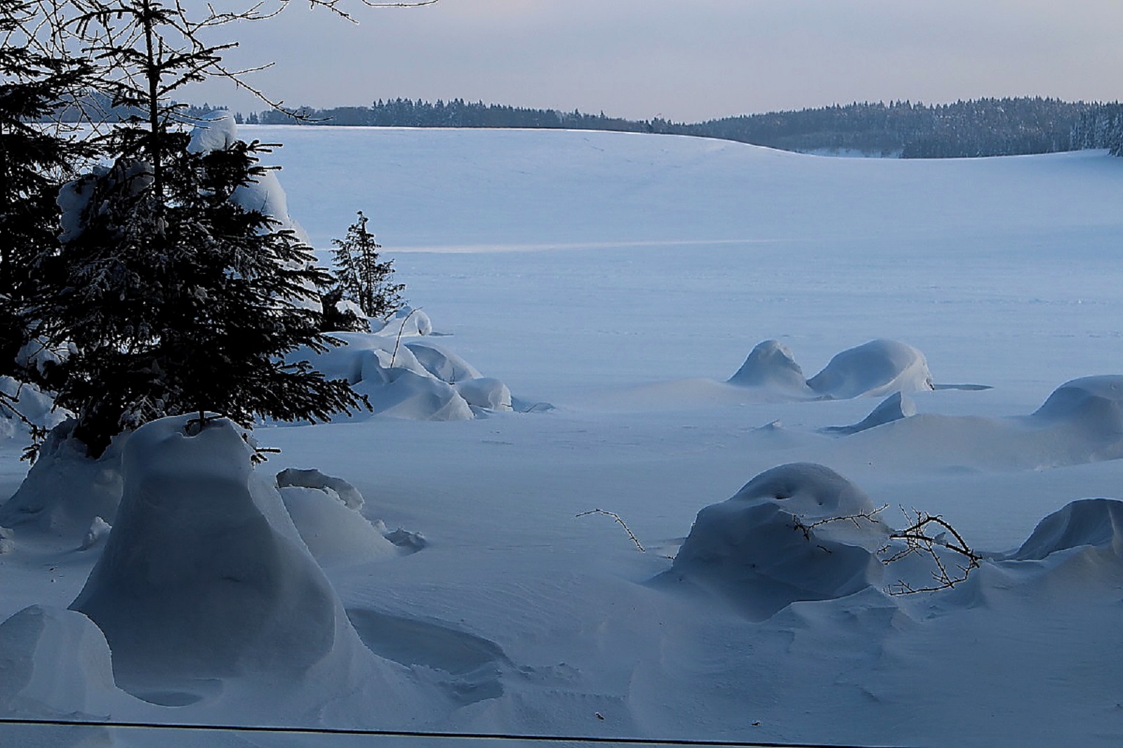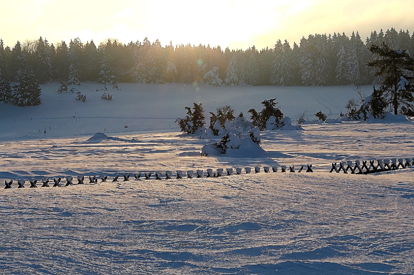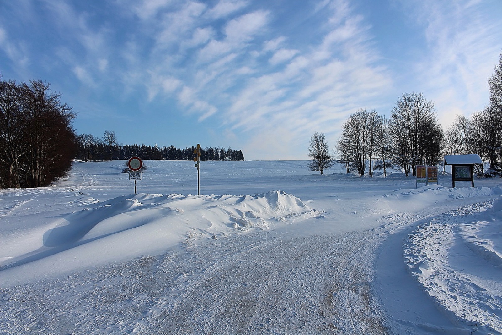 Den Schnee hatte es weiträumig verfrachtet, man konnte aber gut auf der Schneeschicht (wie auf einem zugefrorenen Teich) laufen, die die Oberfläche war durch den Eiswind sehr stabil geworden.