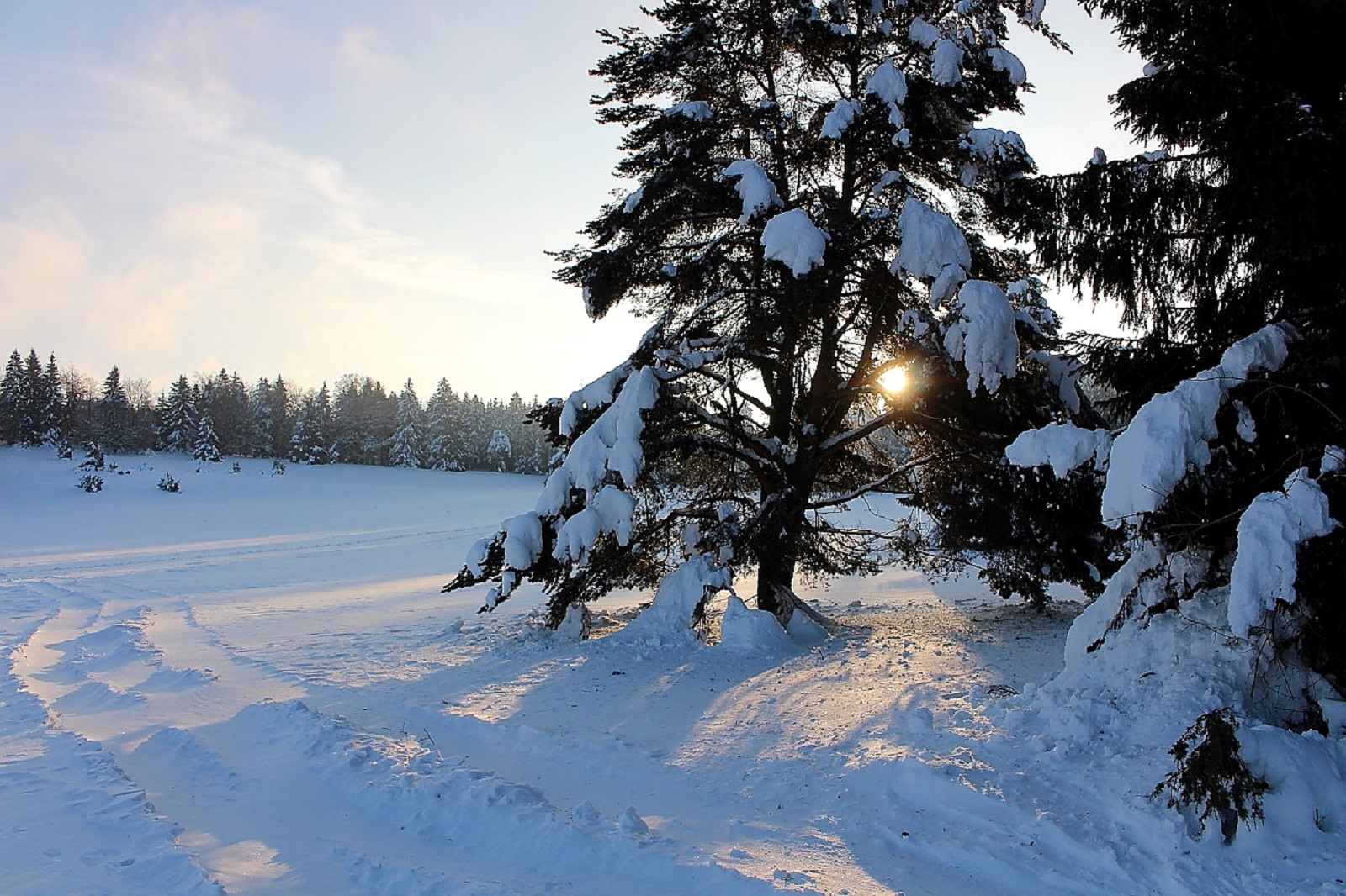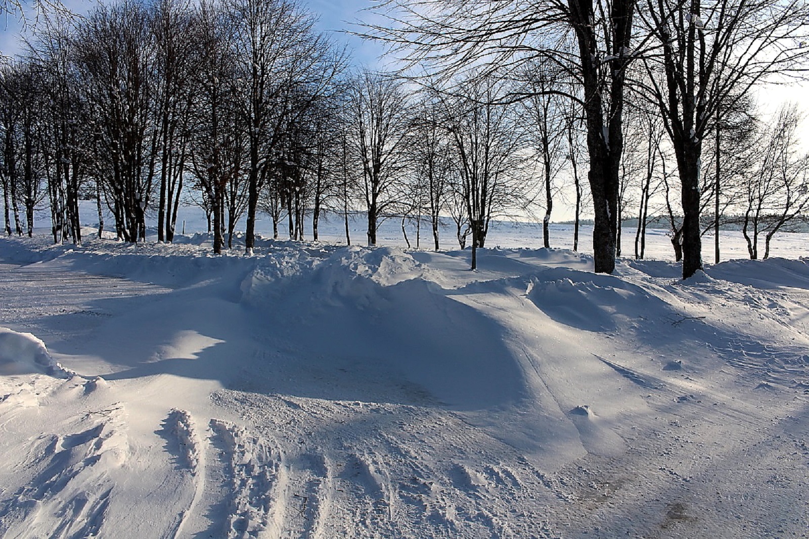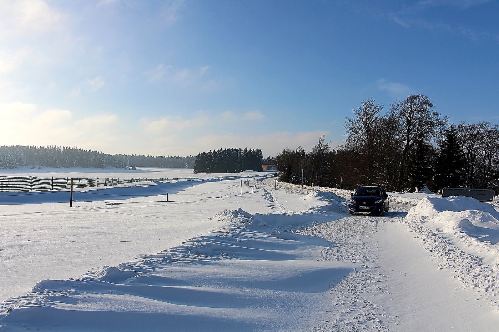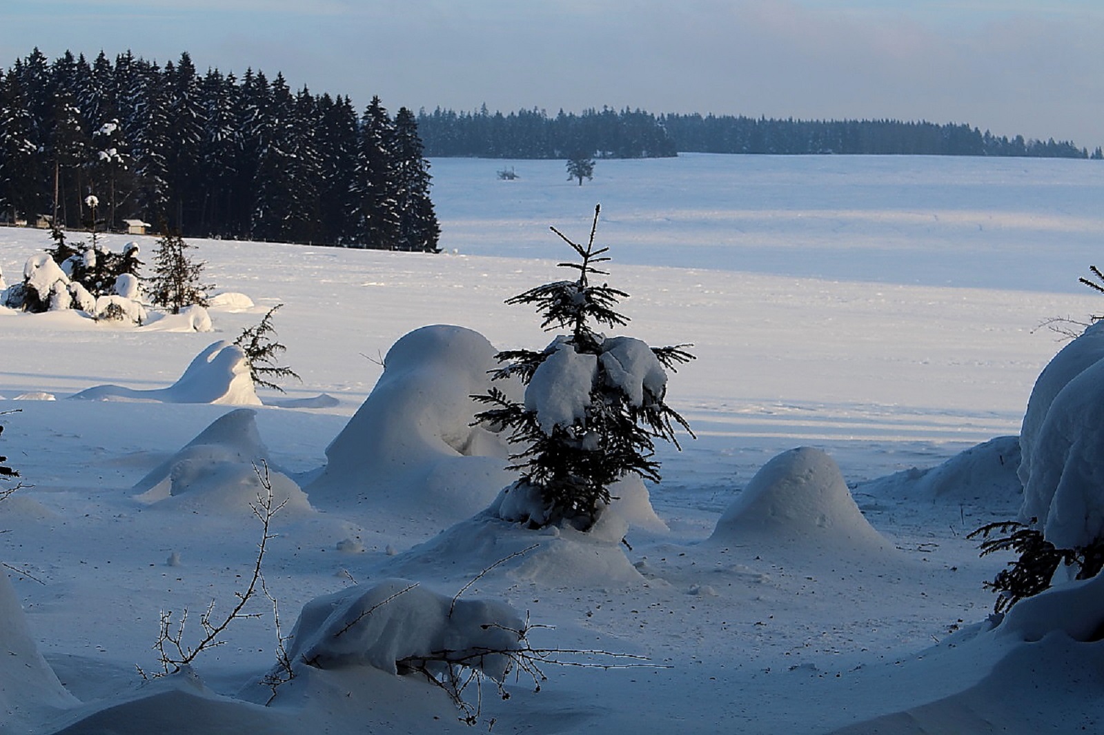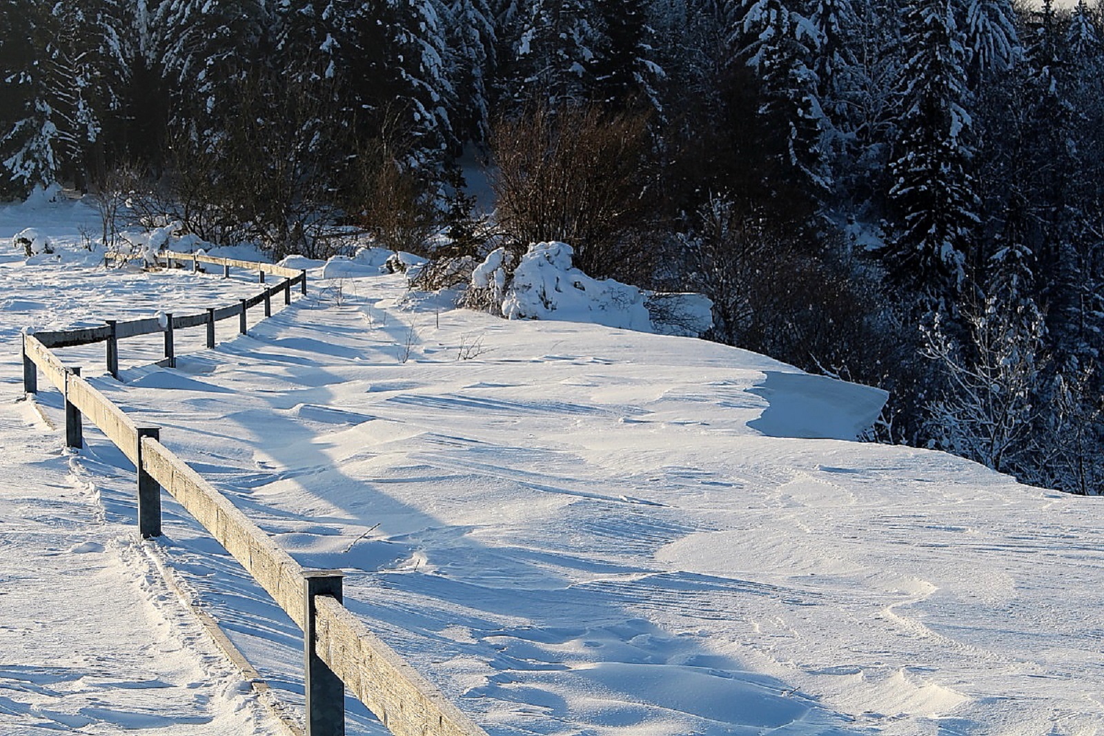 Den Schnee hatte es weiträumig verfrachtet, man konnte aber gut auf der Schneeschicht (wie auf einem zugefrorenen Teich) laufen, die die Oberfläche war durch den Eiswind sehr stabil geworden.