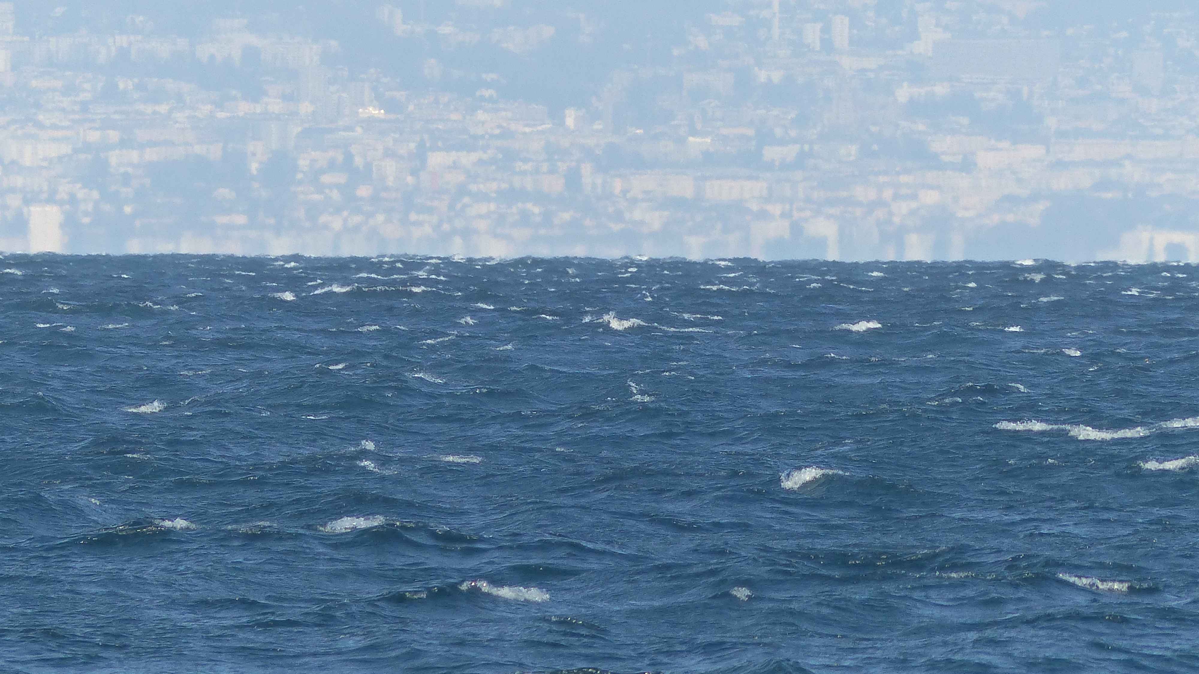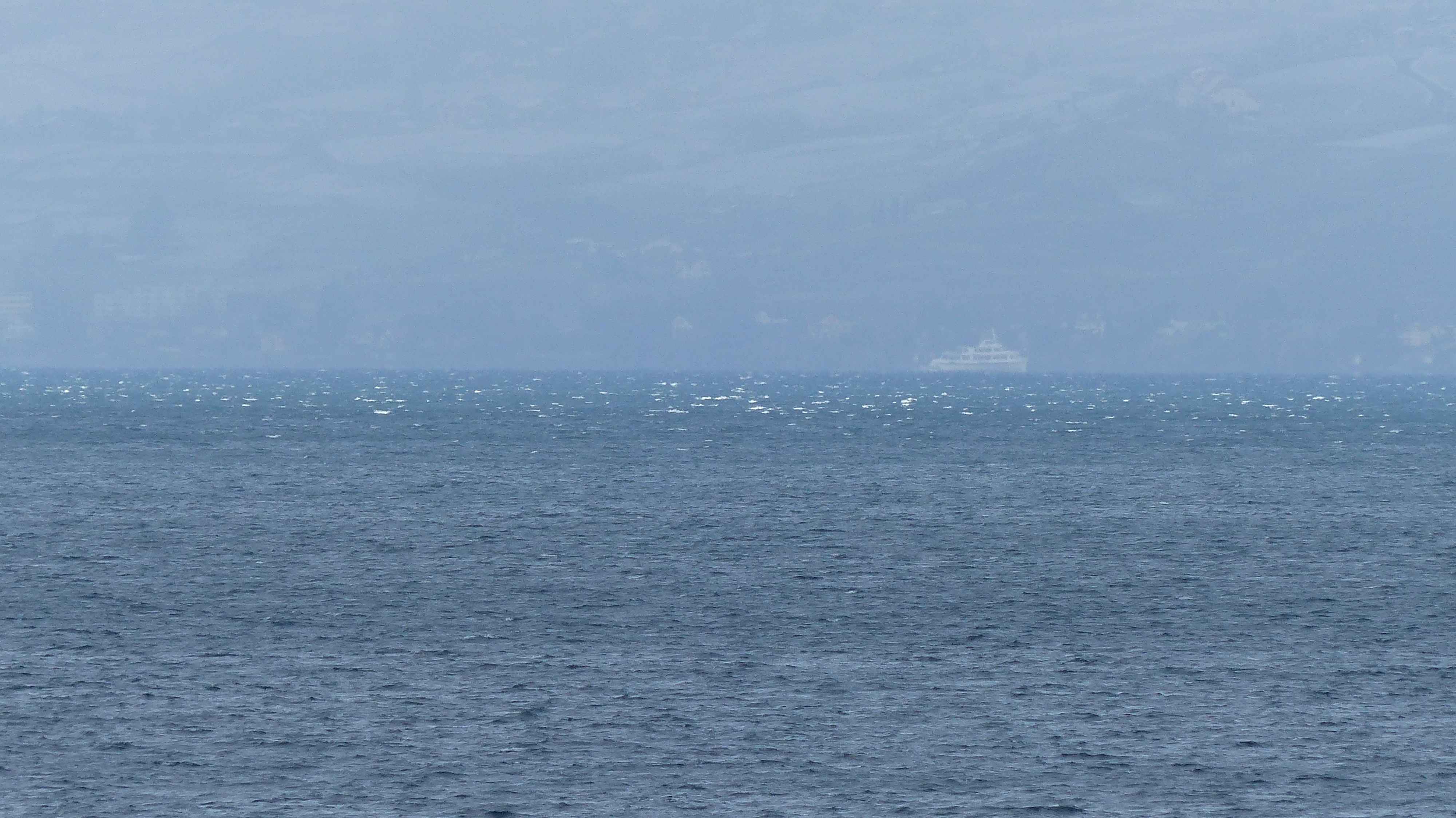 Der Genfersee sieht aus wie ein flacher Hügel zwischen Yvoire und Lausanne. Das könnte die Erdkrümmung sein oder täusche ich mich?