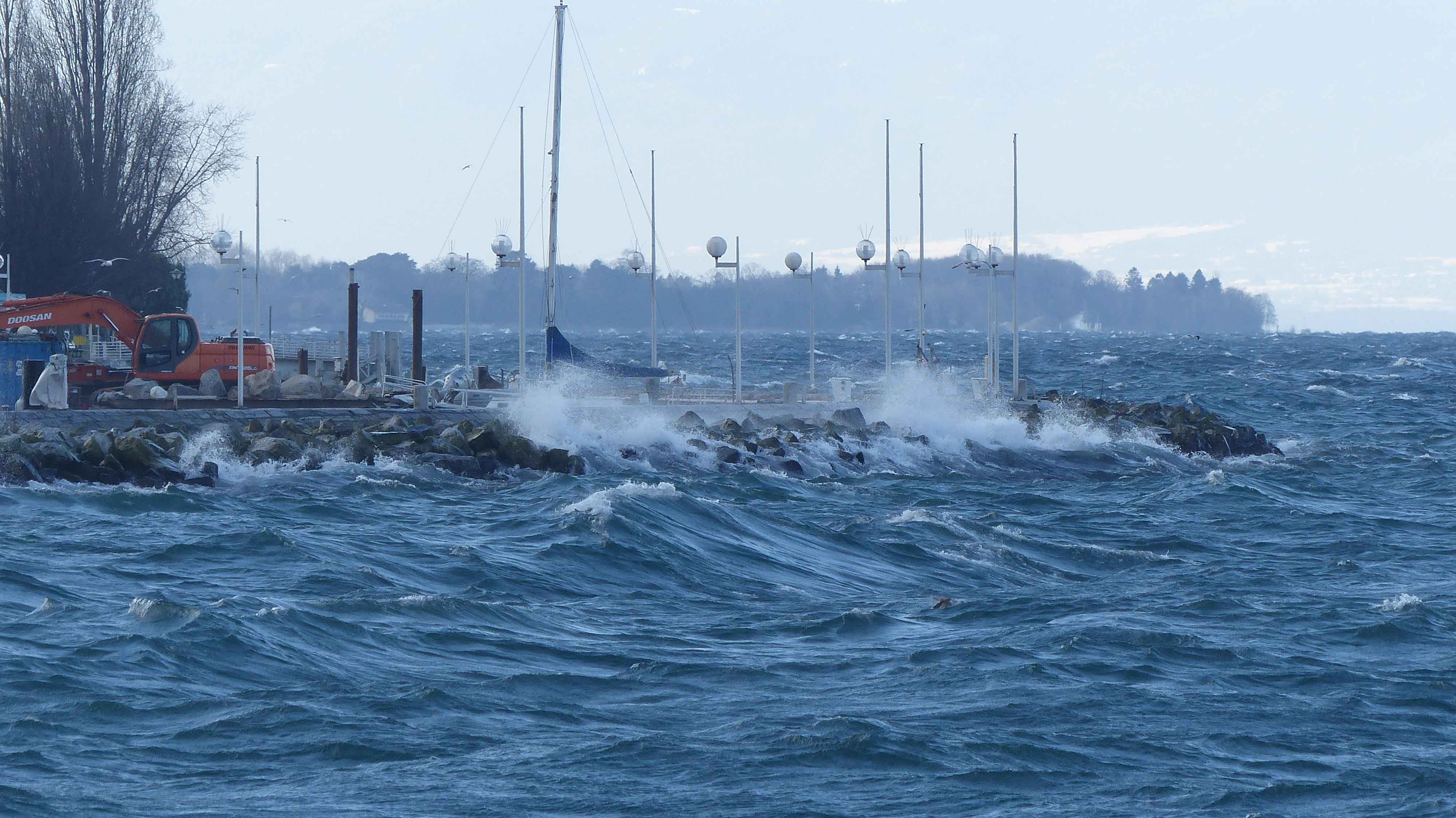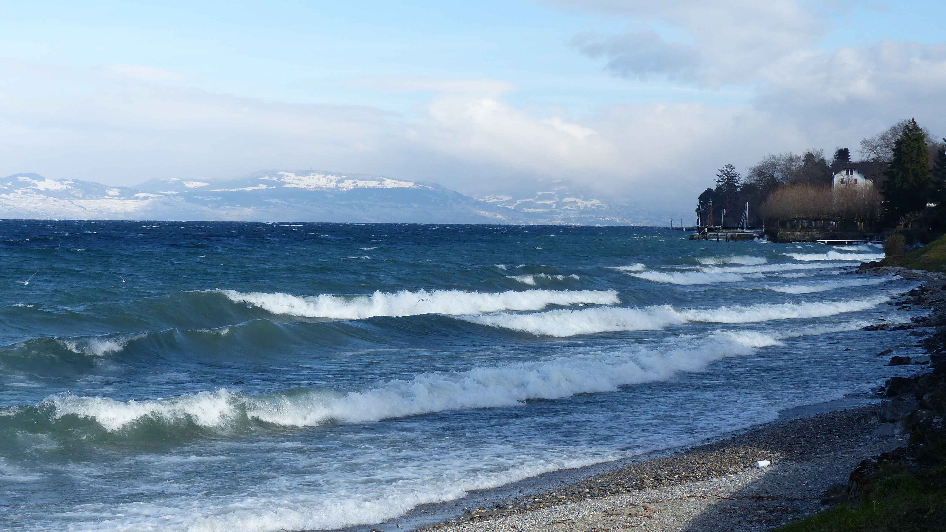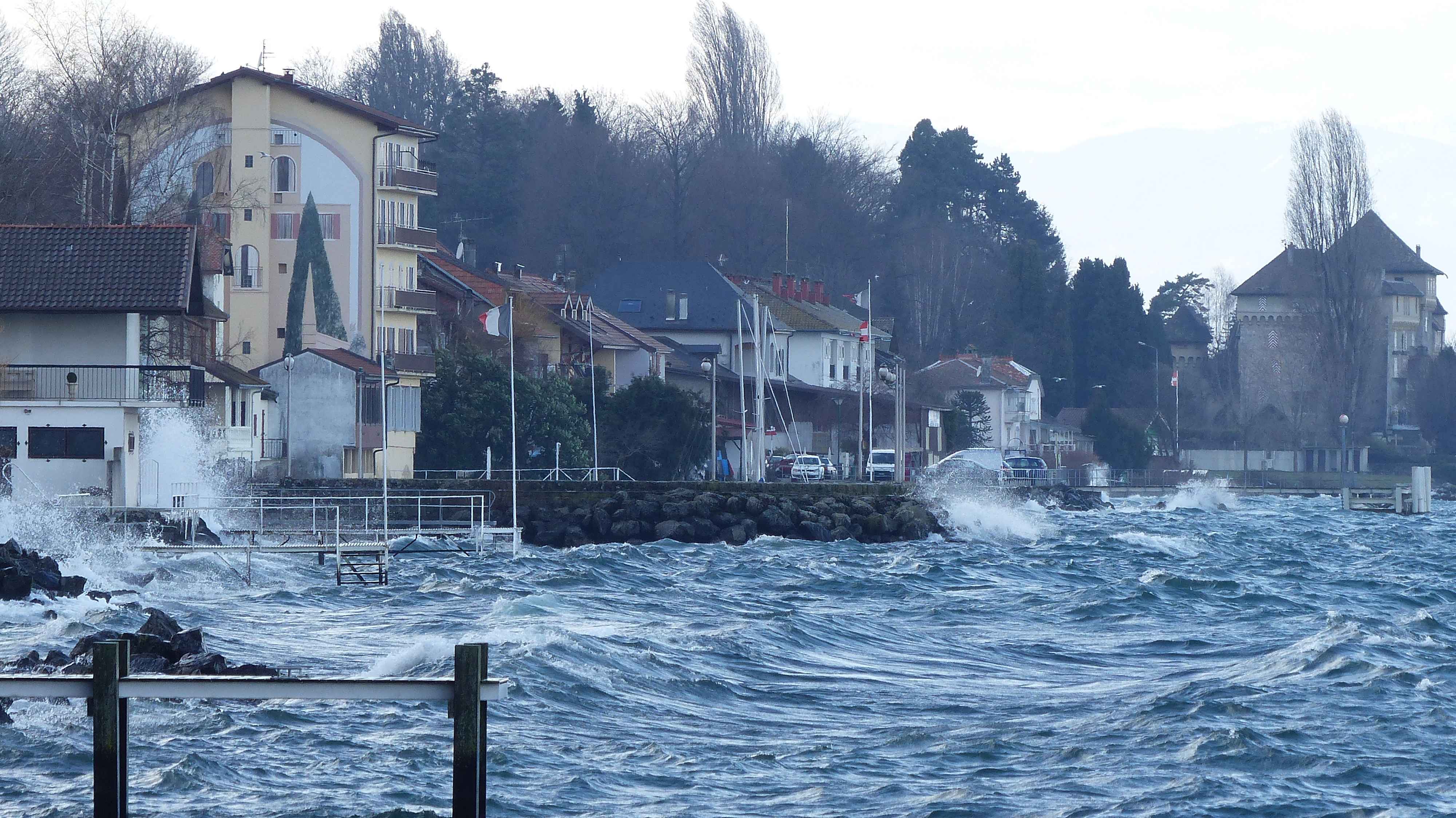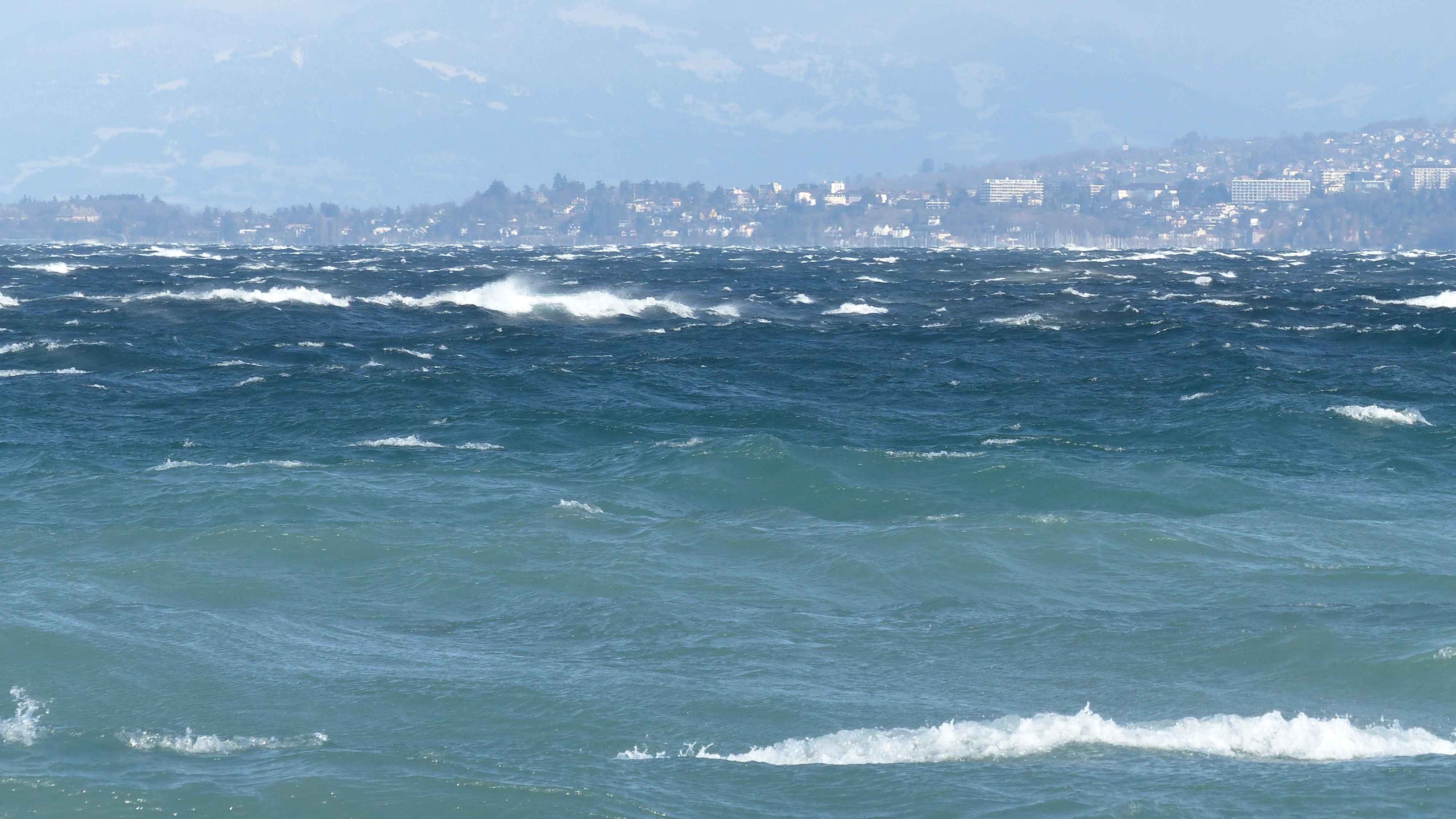Sturmgepeitschter Genfersee, Thonon im Hintergrund