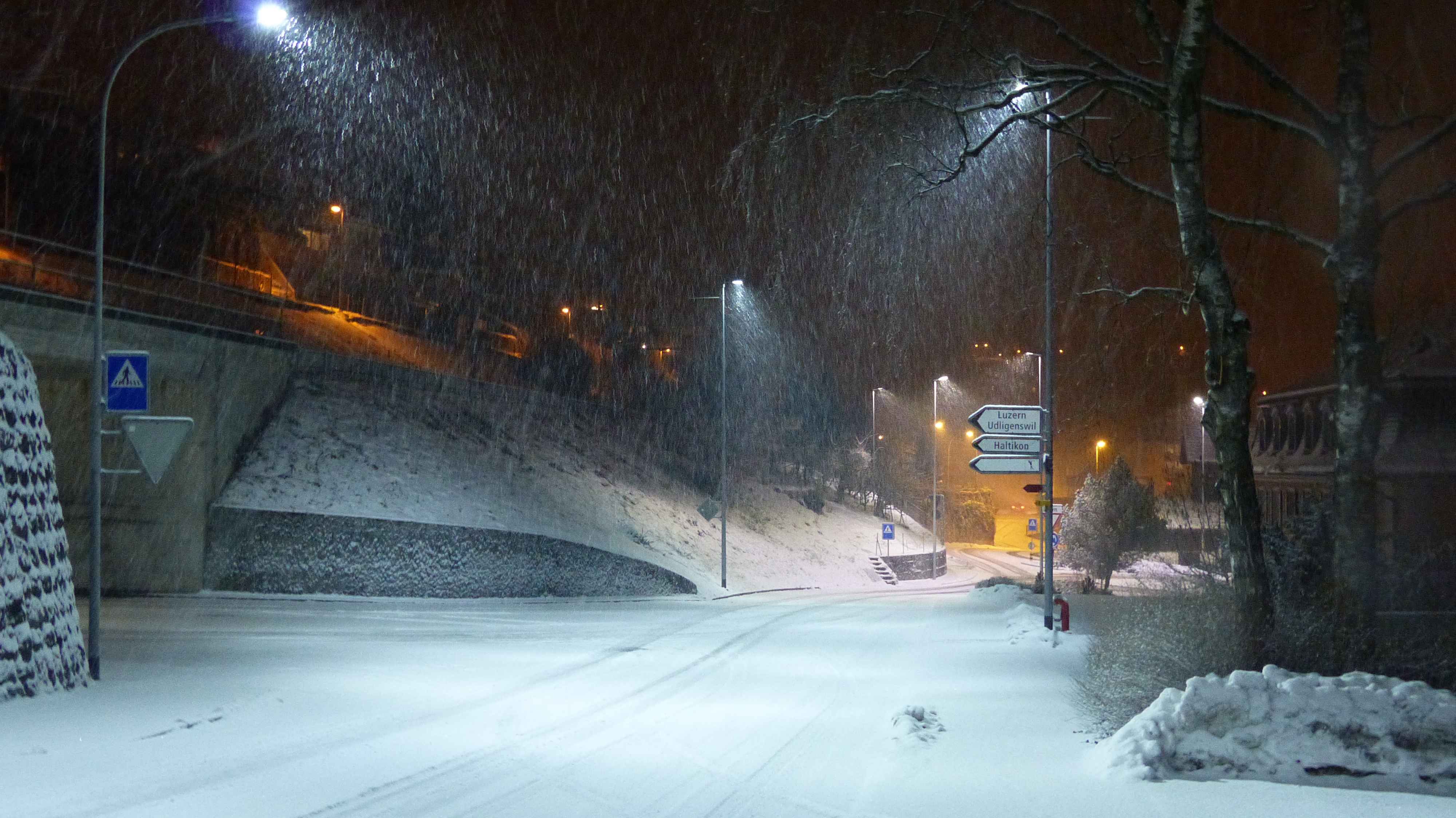 Und als Zugabe wurde ich am Abend in Küssnacht am Rigi noch von einem Schneeschauer überrascht. Der hat innerhalb einer Stunde etwa 3-4 cm Neuschnee gebracht.