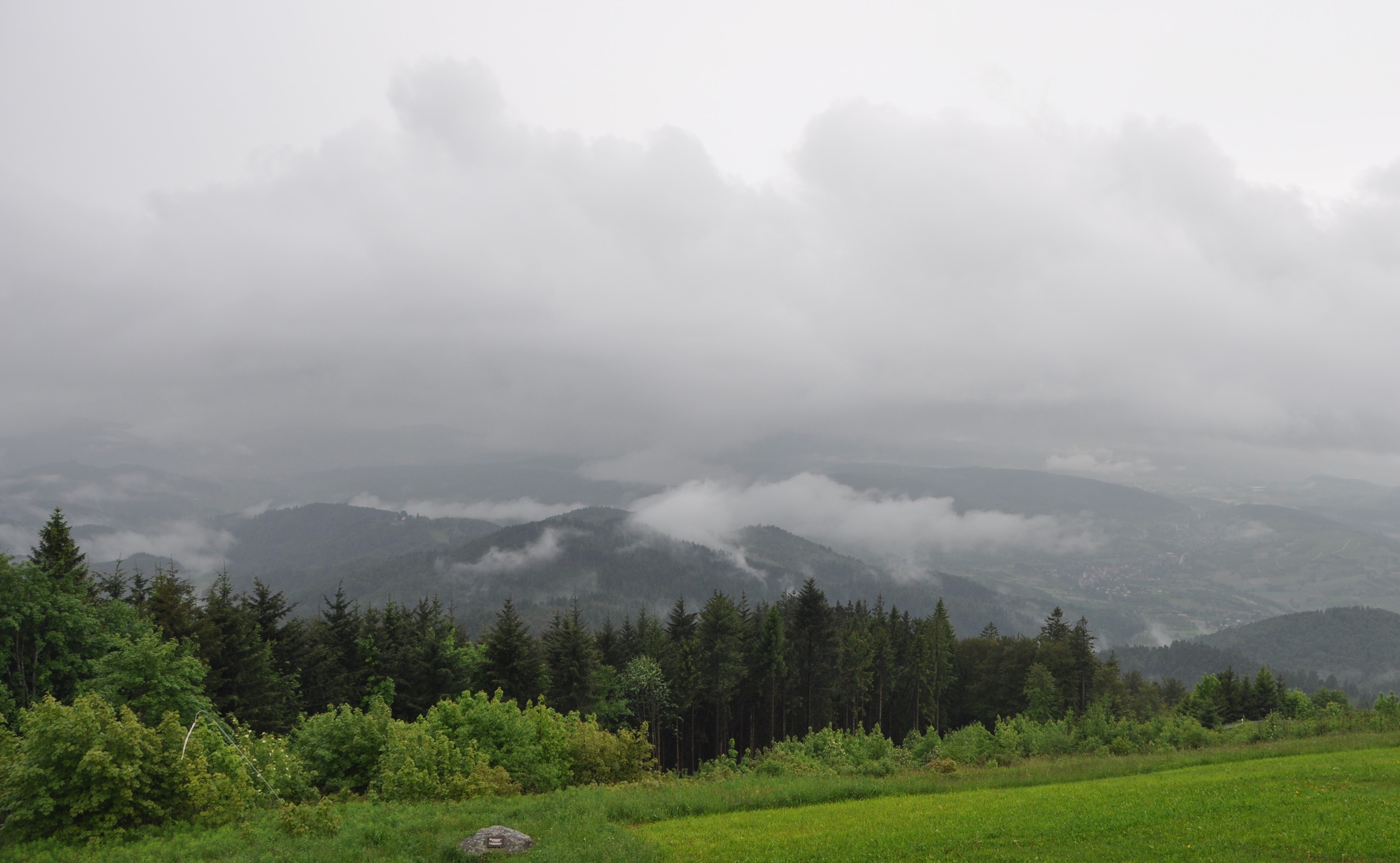 Ich war auf Reko-Tour beim Hohenblauen (Bild). Wenn die Blätter der Bäume schon farbig gewesen wären und sich nicht doch noch in rd. 2 km Distanz ein satter CG mit entsprechend wohligem Sound unter die Nebelbänke gemischt hätte, wäre ich der Meinung gewesen es sei schon tiefer Herbst:
