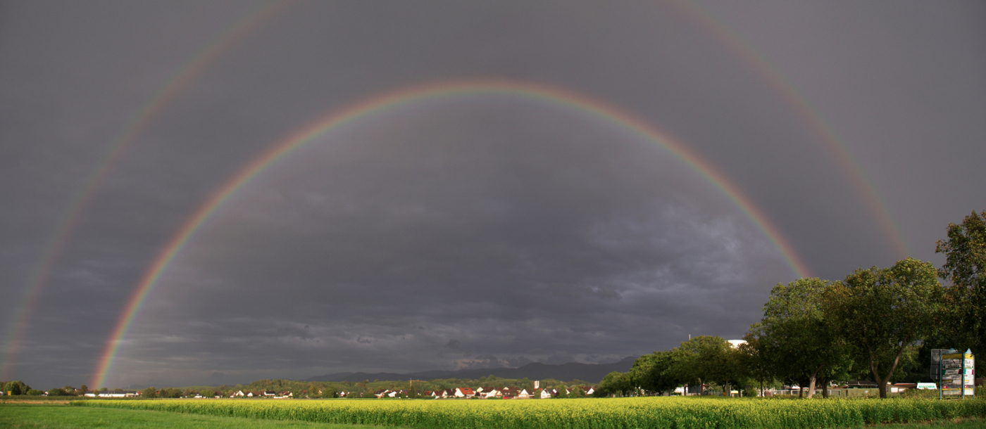 Kurz bevor sich unsere Wege trennten dann das optische Highlight des Abends. Ein sich langsam "füllender" Regenbogen - ja, er ist schon voll...der Regen füllt ihn langsam aus ;)