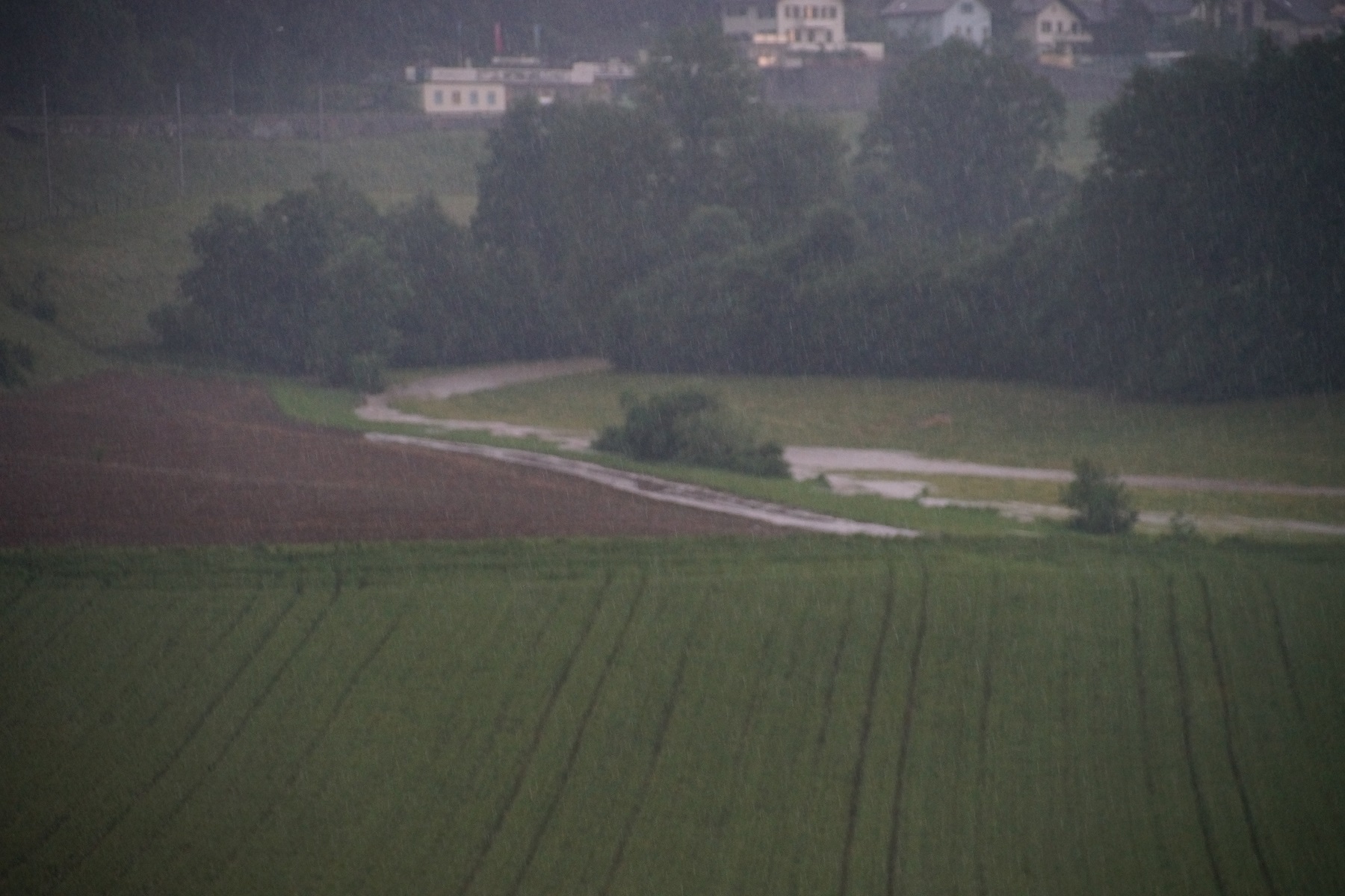 1930 Uhr: Rümlingen, Toffen - Das Gewitter zieht weiter nach Nordwesten über Rümligen und Toffen. Es bringt in kurzer Zeit viel Regen, aber weniger Hagel.