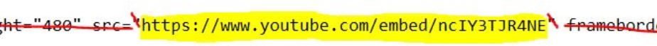 Um ein Youtube-Video einzubinden, klickst du in Youtube mit der rechten Maustaste auf das Video und wählst "Einbettungscode kopieren". Von diesem Code benötigst du nur den effektiven Einbettungslink (siehe unten gelb markiert) ...