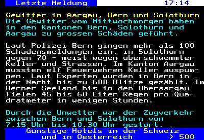 Im Moment bin ich in Ins und wir haben die Ruhe vor dem nächsten Ansturm. Bahnlinie Ins-Biel ist unterbrochen, Bern-Neuenburg vermute ich auch, denn in Ins steht der Bahnhof unter Wasser...