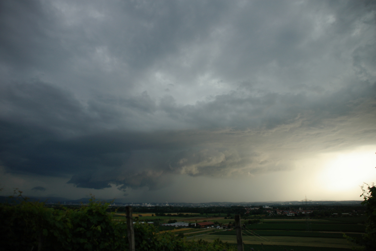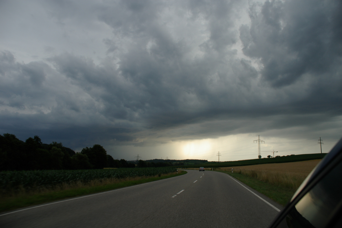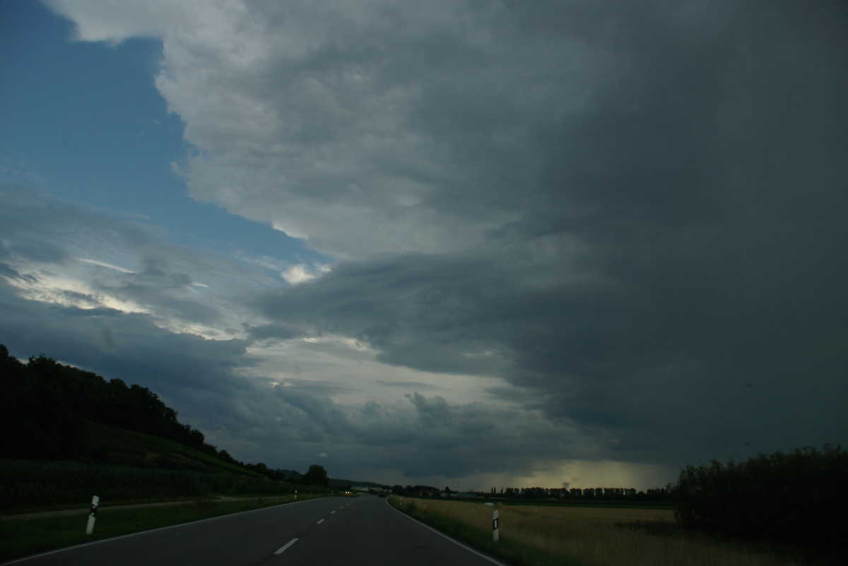 Ich wollte die südlichste Zelle erwischen und fuhr weiter auf der B3 nach Süden, zwischen Schliengen und Efringen-Kirchen nahm das ganze dann deutlich Strukturen an. 19.30 Uhr: