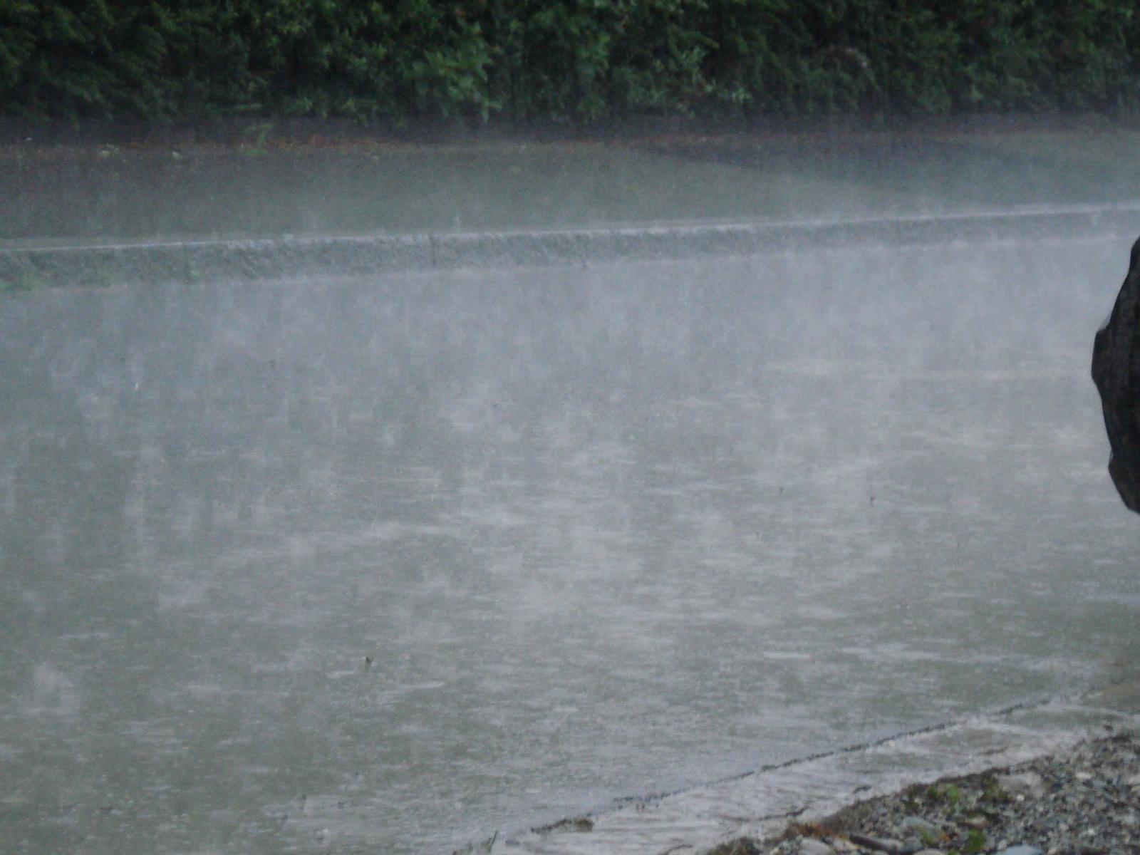 Sehr starker Regen und vereinzelt Donner zu hören.