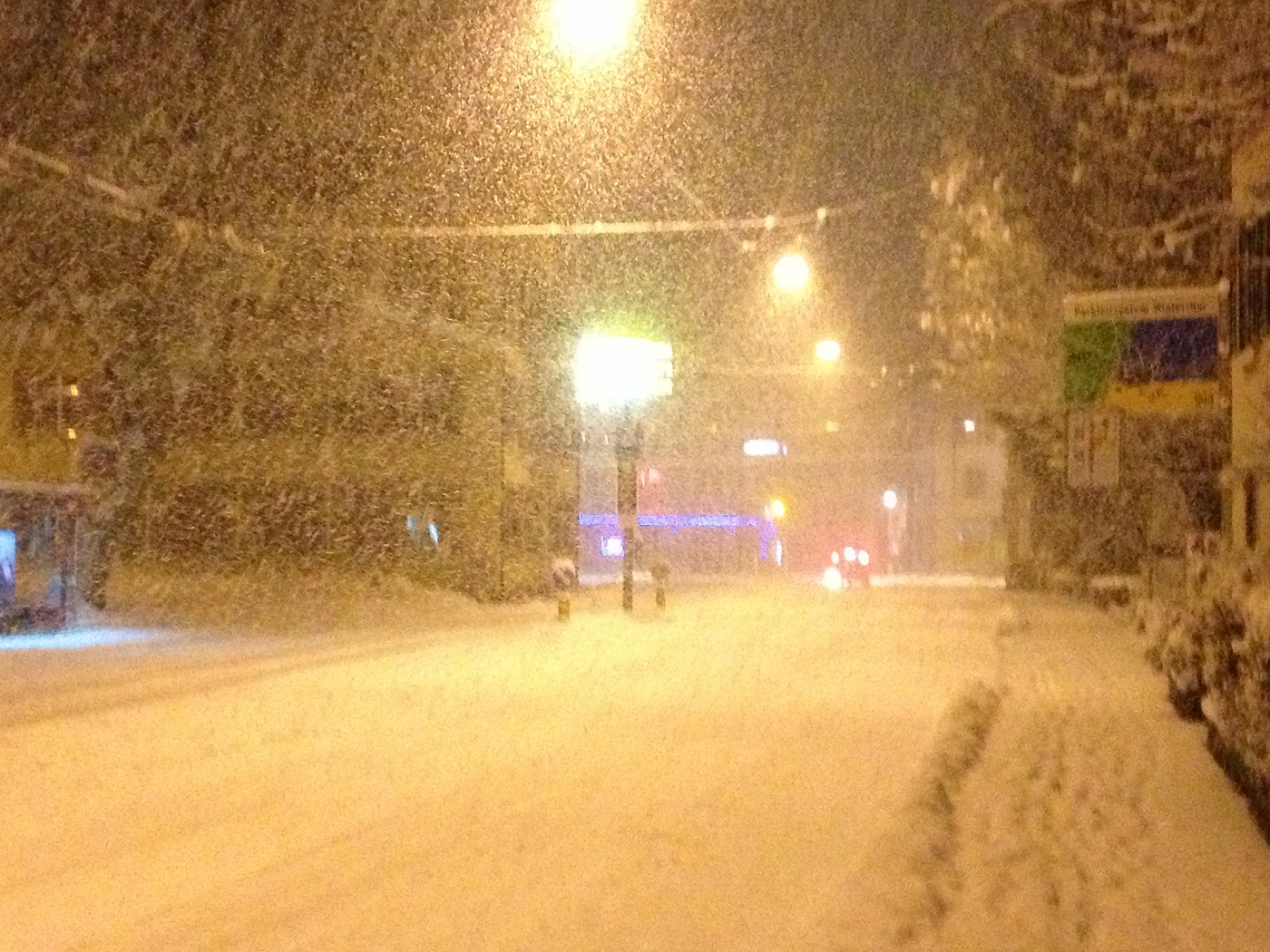 Neuschnee letzter Schauer ca 1cm, alles wieder weiss. Aktueller Schauer bisher erneut 1cm, immerhin 2cm liegen somit im Moment, auch die Strassen sind weiss.