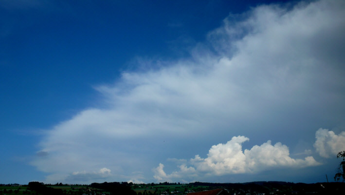 Bild 1: Blick auf einen riesigen Cumulonimbus Richtung Nordosten von Birrwil (AG) aus